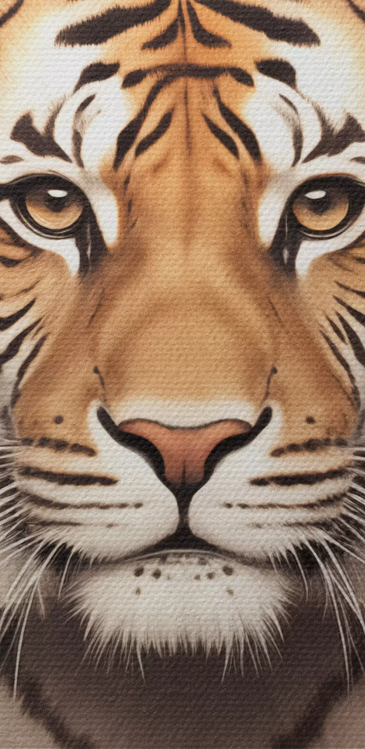Paveikslas Tigras su karūna, rožinis fonas, tulpių žiedai Nr s42782