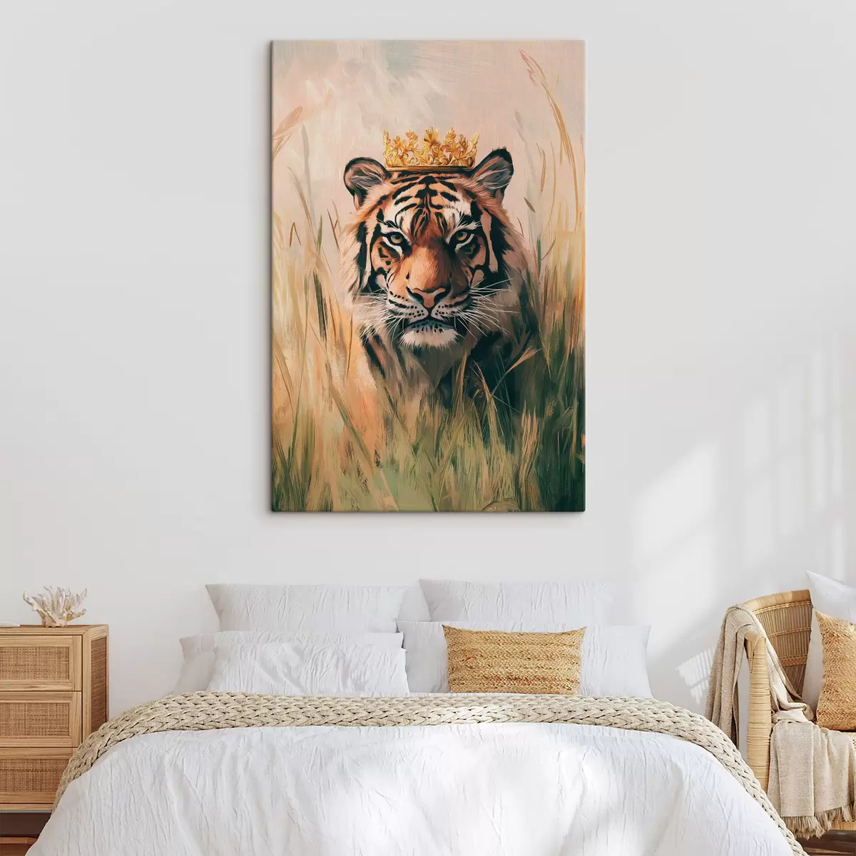 Paveikslas Tigras pievoje su žole, karūna, akrilo tapyba Nr s42783