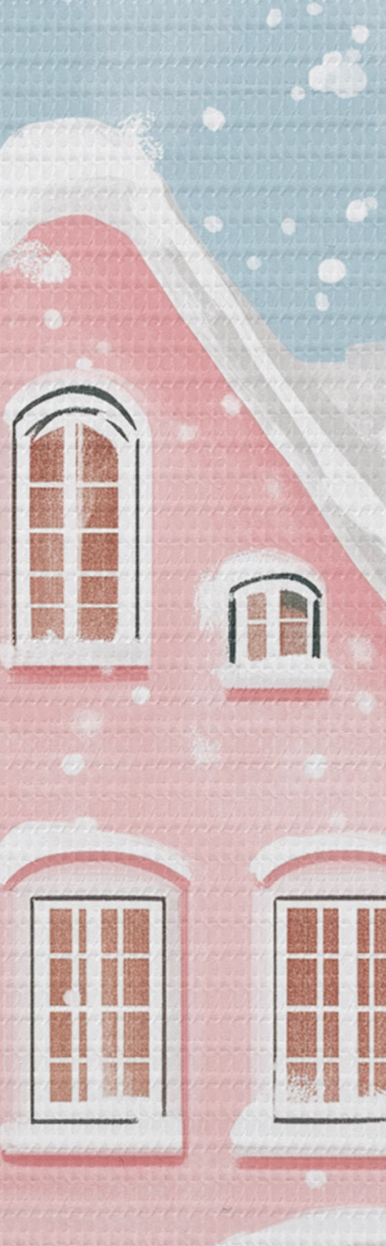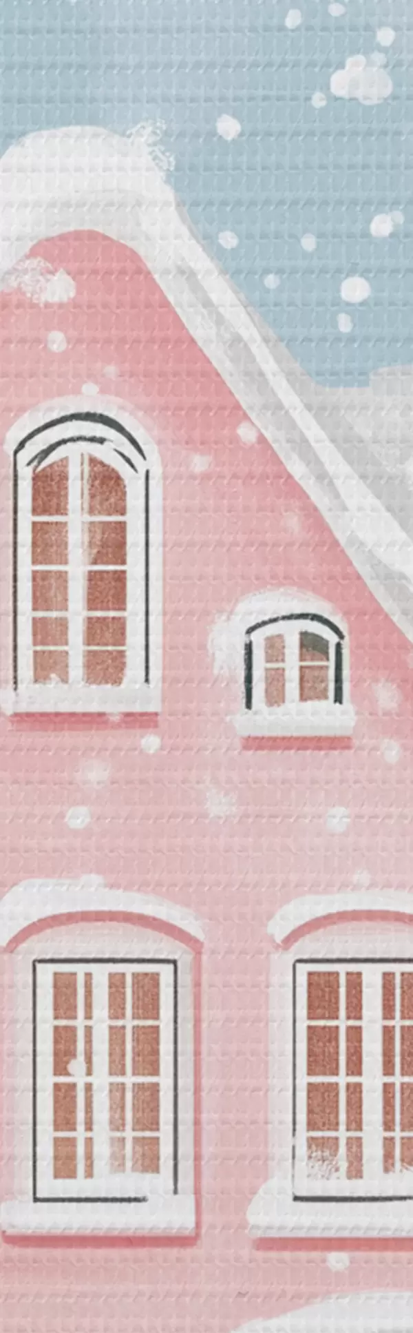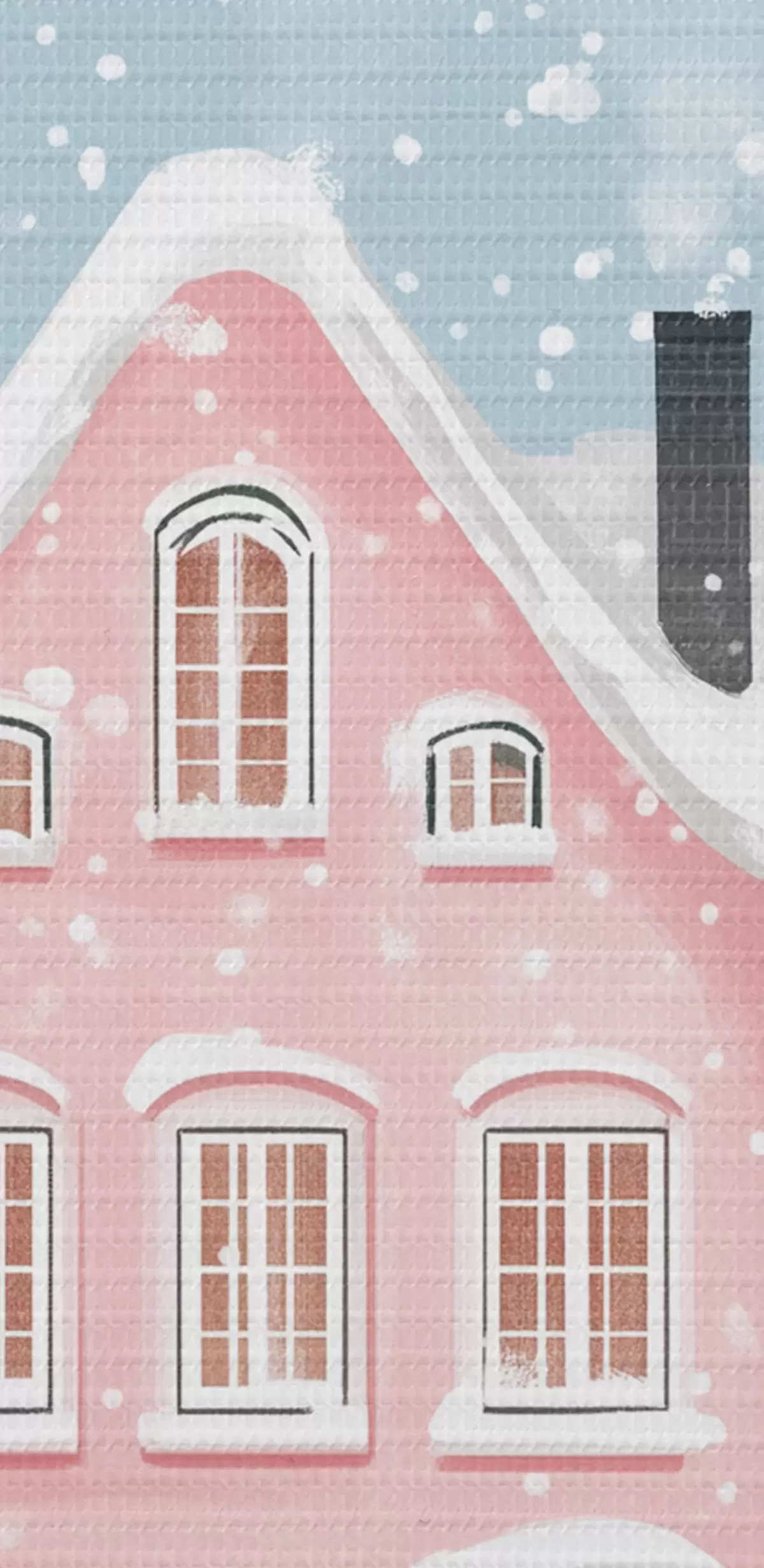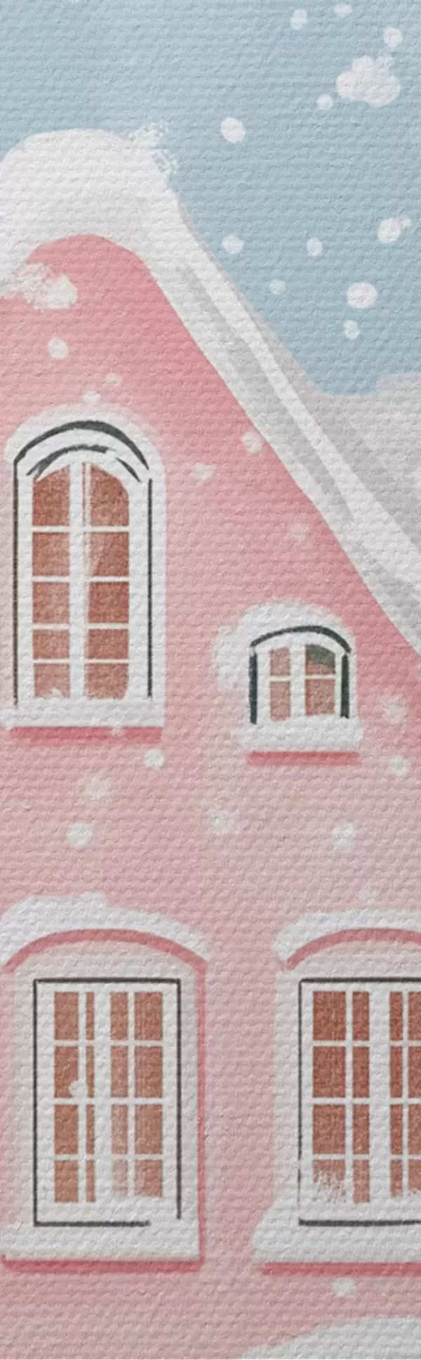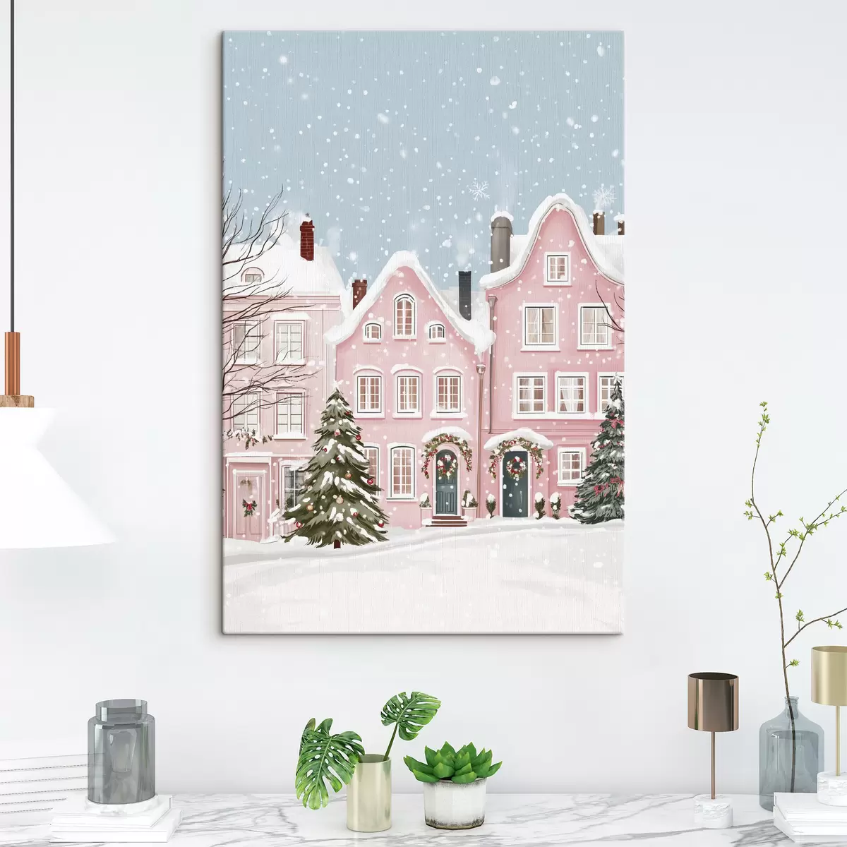 Paveikslas Gražus miestelis su mielais rožiniais namukais, žiemos estetika, snaigėmis Nr s42793