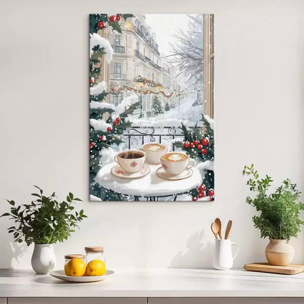 Paveikslas Žiemos estetika, kavos puodeliai, restoranas, miesto gatvė Nr s42794