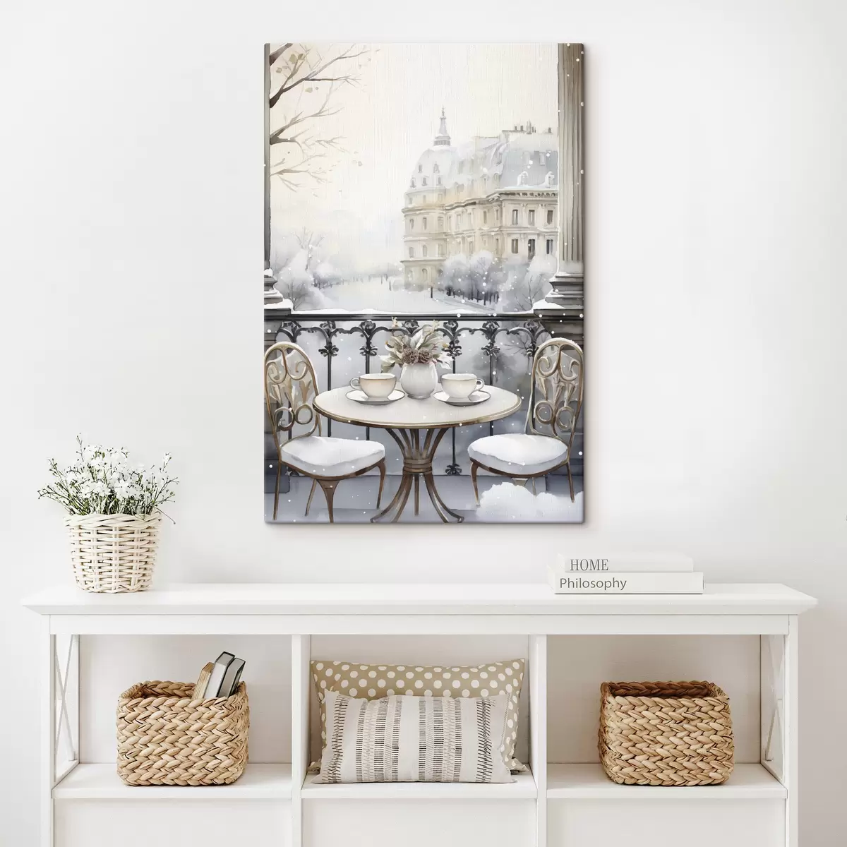 Paveikslas Graži kavinė, arbatos puodeliai, bohemiškas stilius, akvarelė, žiemos estetika Nr s42796