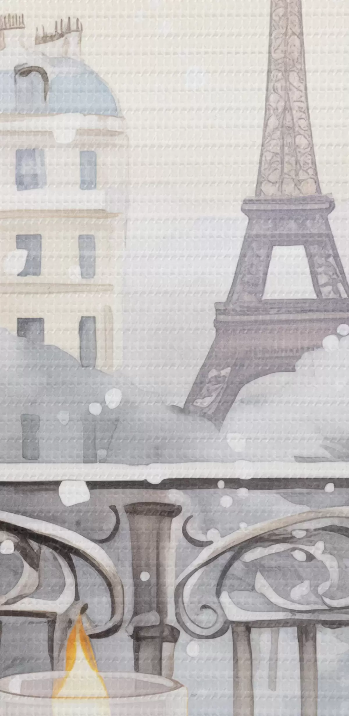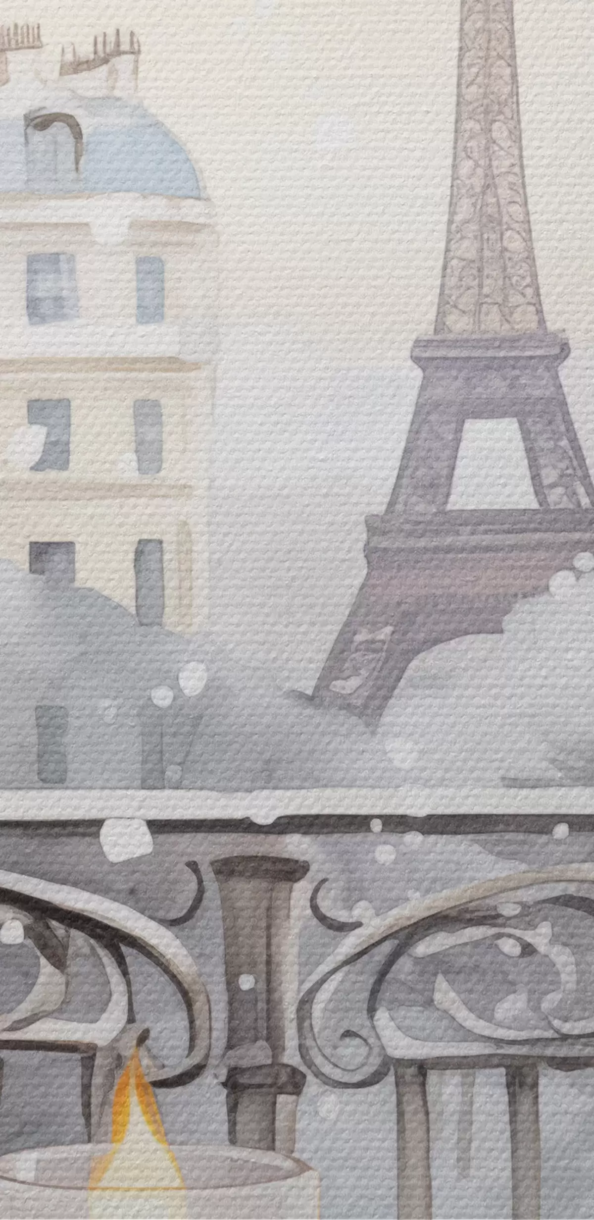 Paveikslas Graži kavinė Paryžiuje, arbatos puodeliai, romantiškas vaizdas, žiema, akvarelės stilius Nr s42799
