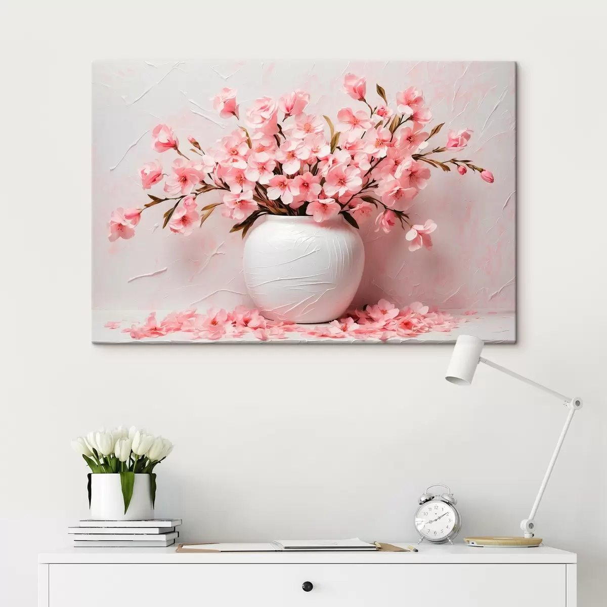 Paveikslas Rožinės gėlės baltoje vazoje Nr s42915