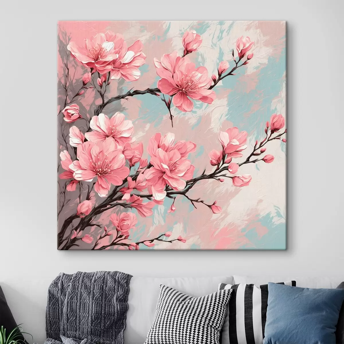 Paveikslas Rožinės gėlės ir stiebai akrilo tapybos stiliumi Nr s42918