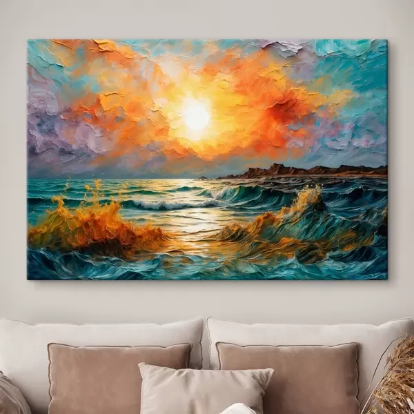 Paveikslas Audringa jūra ir saulė aliejinės tapybos stiliumi Nr s42920