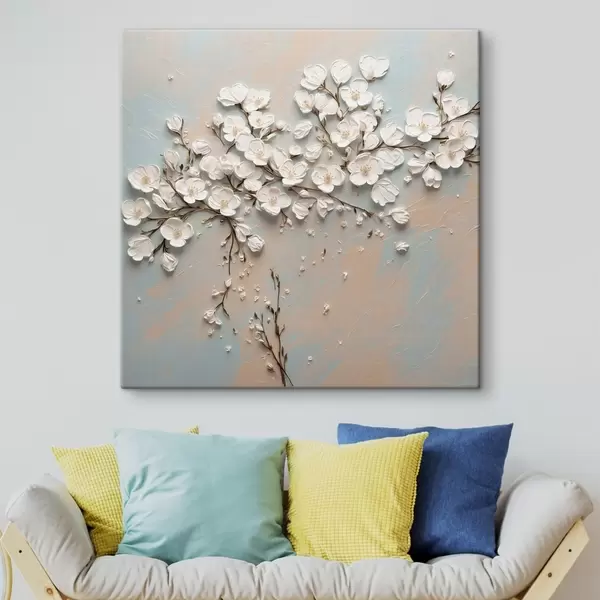 Paveikslas Baltos mažos gėlės akrilo tapybos stiliumi Nr s42921