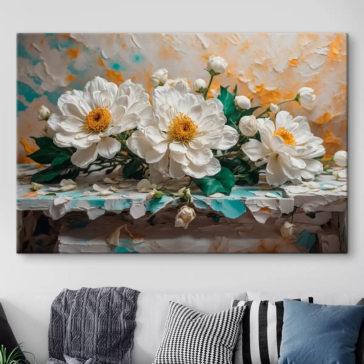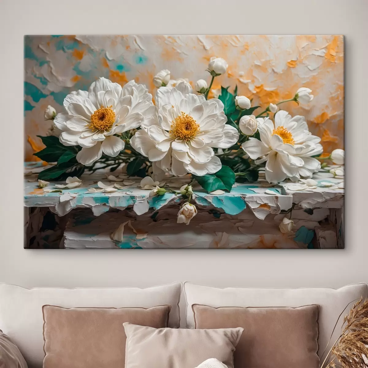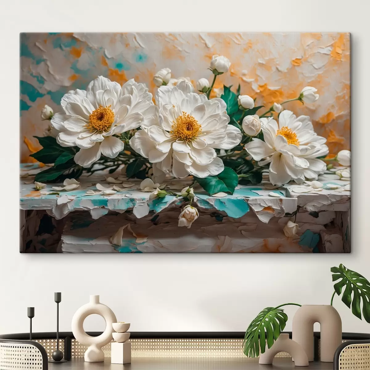 Paveikslas Baltos gėlės ant stalo abstrakčiame fone Nr s42924