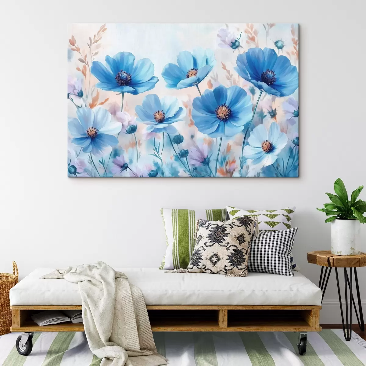 Paveikslas Mėlynos gėlės mėlyname fone Nr s42971