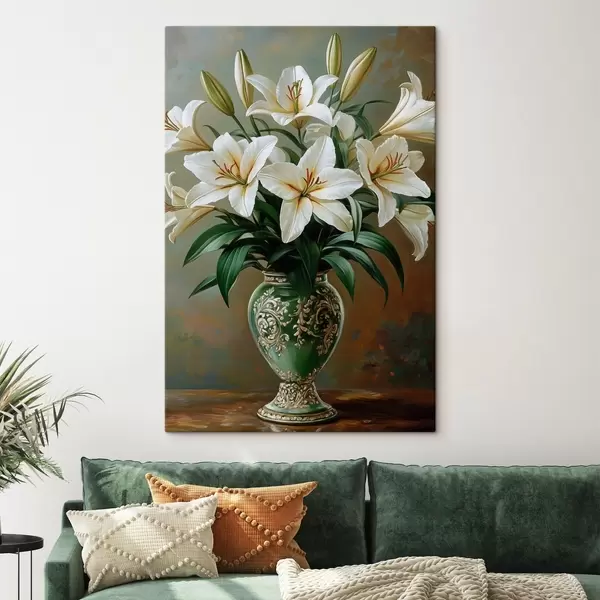 Paveikslas Baltų lelijų puokštė vazoje Nr s42975