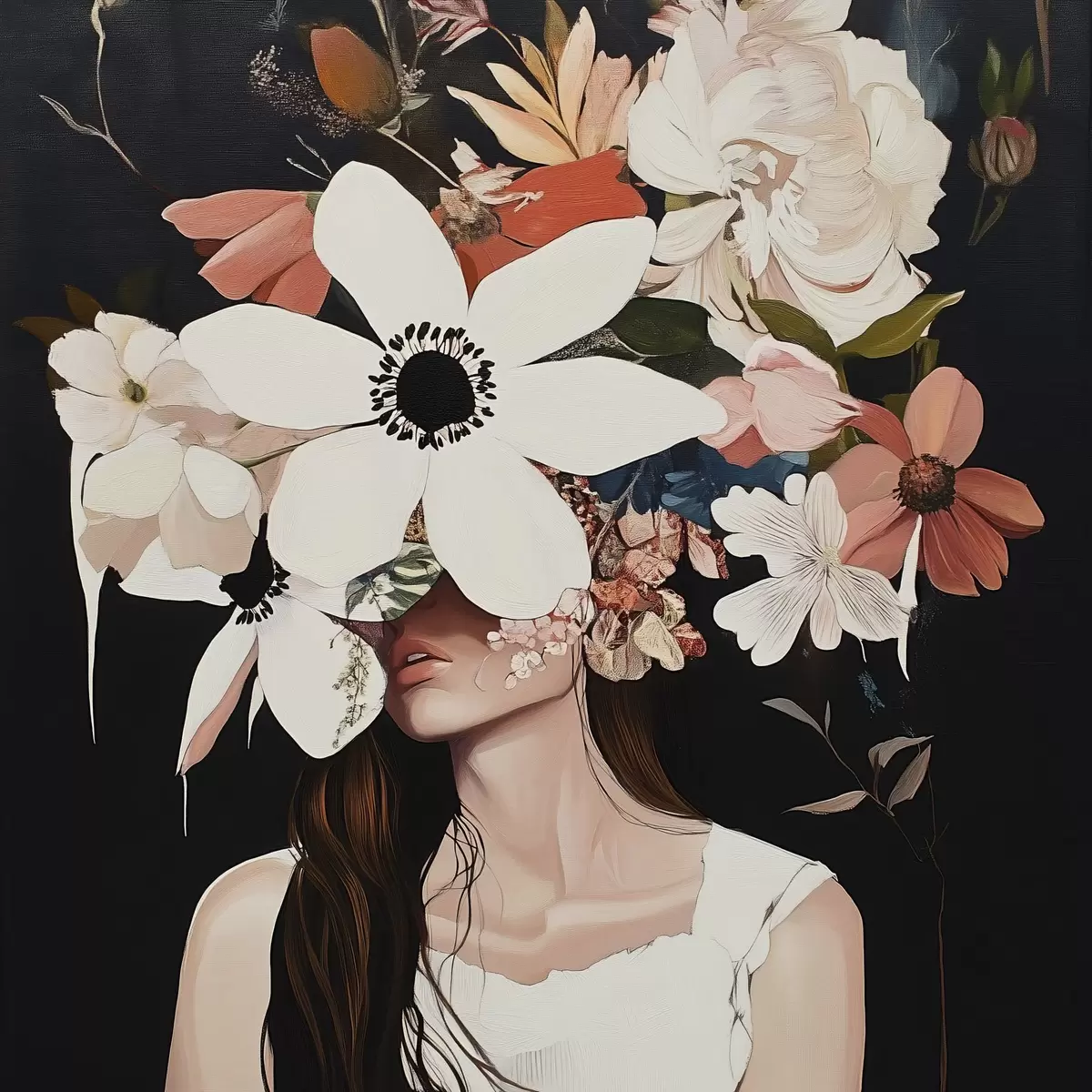 Paveikslas Mergaitė su gėlėmis ant veido Nr s42989