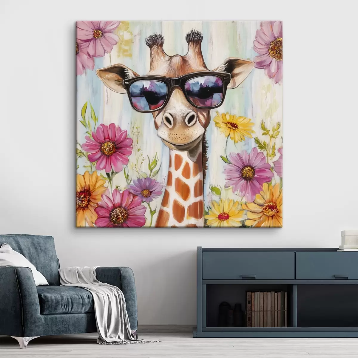 Paveikslas Žirafa su akiniais prie gėlių Nr s42991