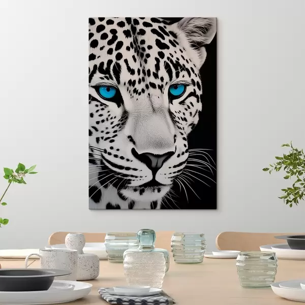 Paveikslas Juodai baltas leopardo mėlynomis akimis portretas Nr s43008