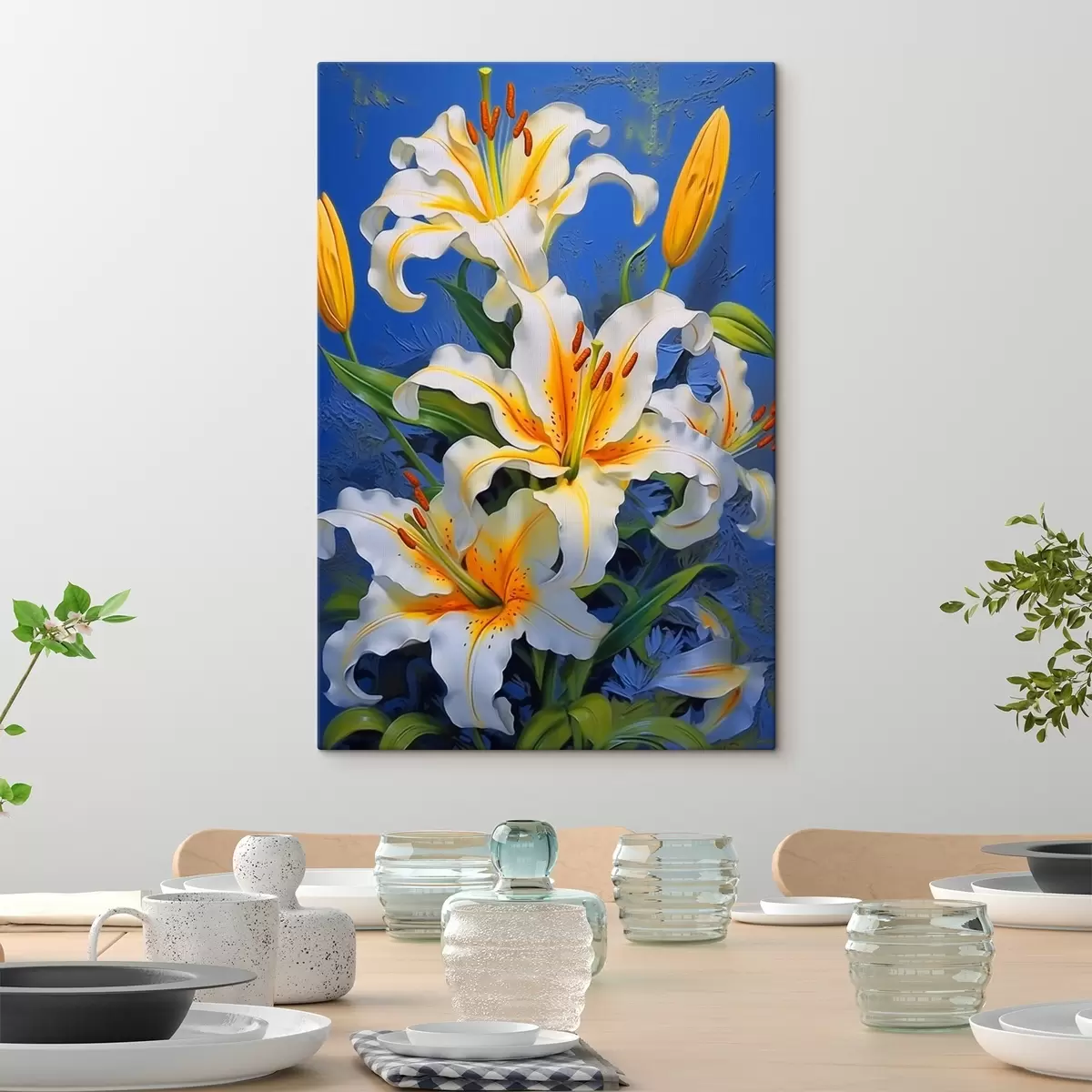Paveikslas Baltos lelijos mėlyname fone Nr s43018