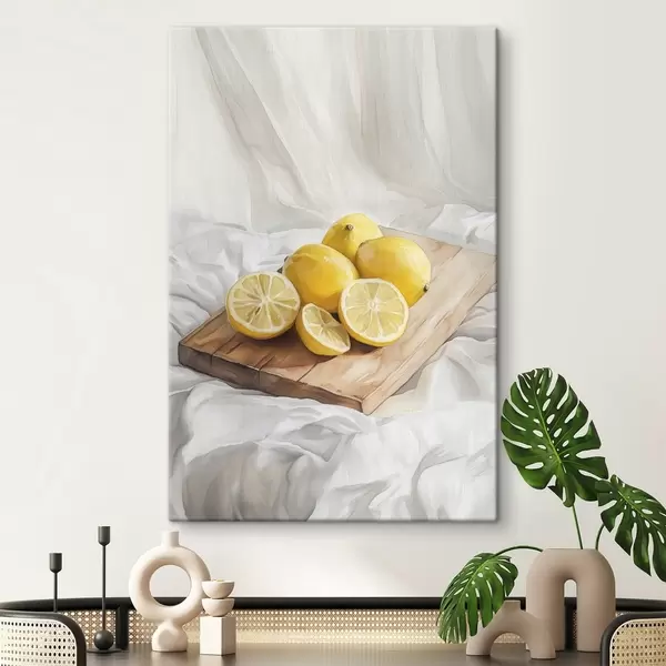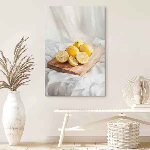 Paveikslas Estetiškos citrinos ant medinės lentos, namų dekoravimas, natūralus apšvietimas Nr s43062