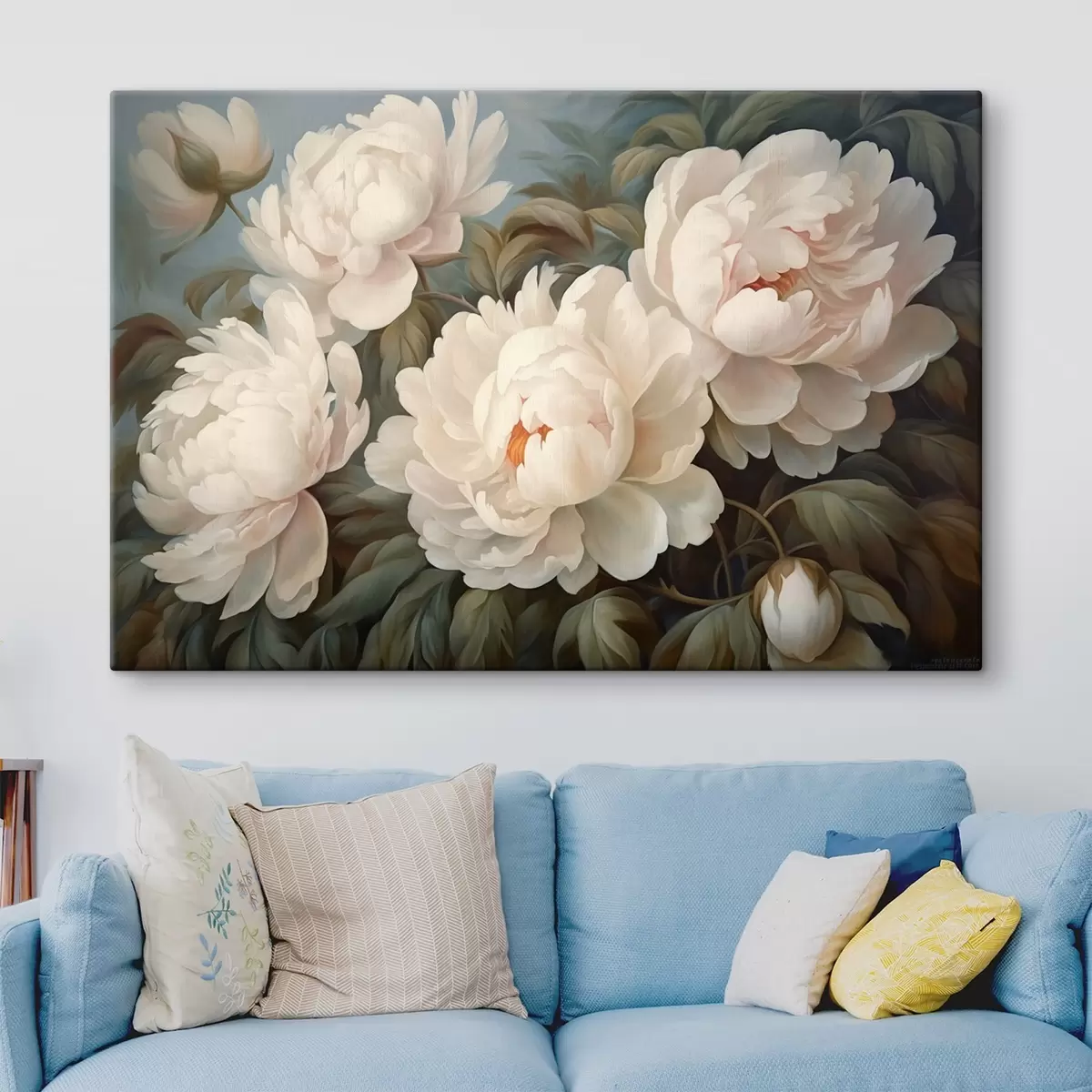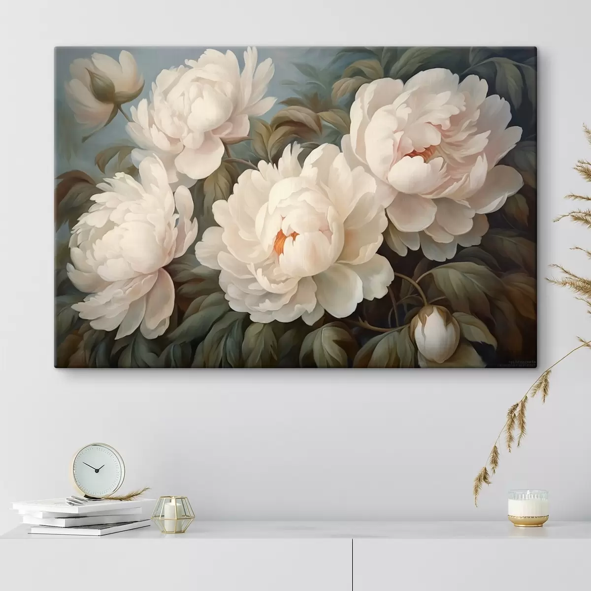 Paveikslas Baltos gėlės ir lapai rūke Nr s43091