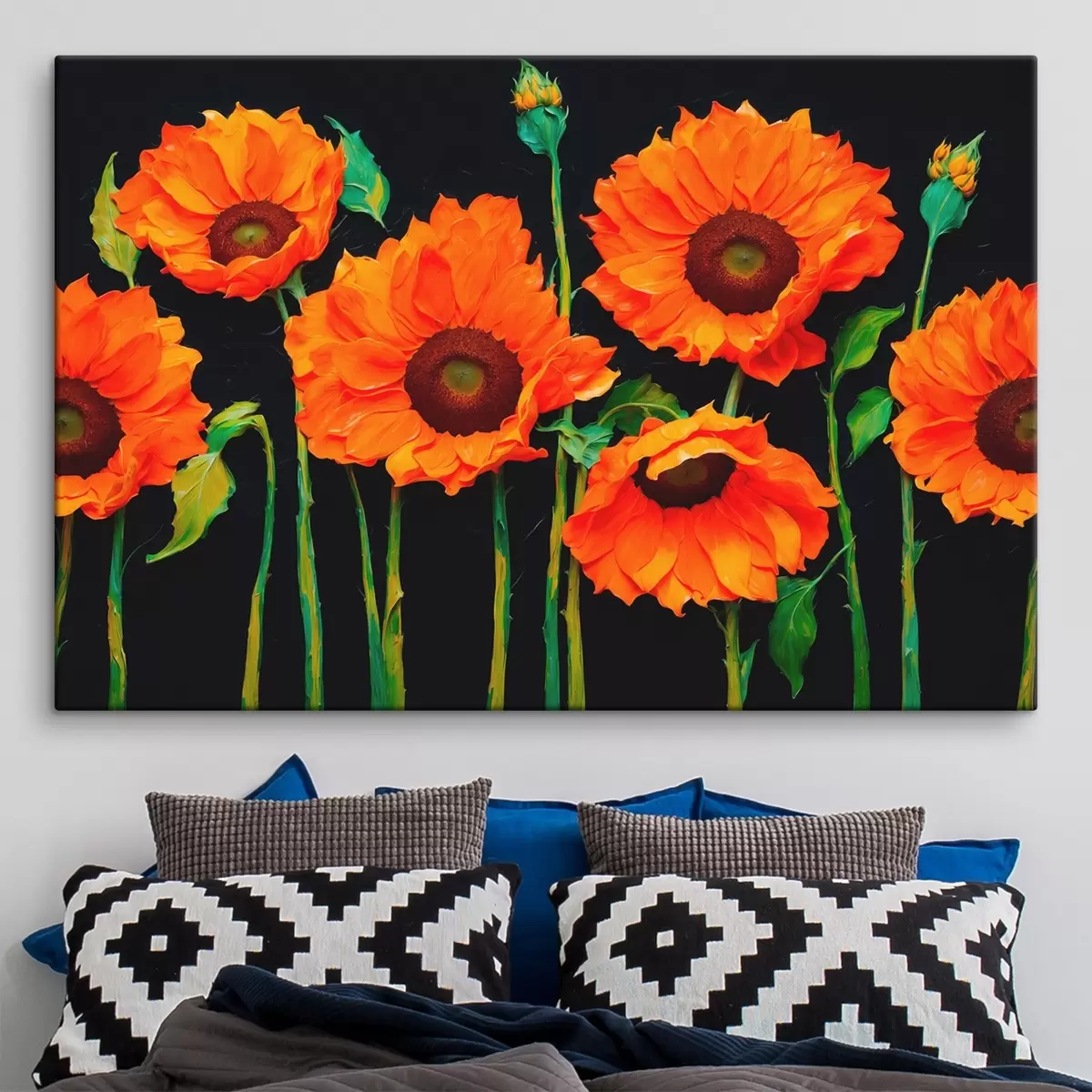Paveikslas Raudonos saulėgrąžos tamsiame fone Nr s43103