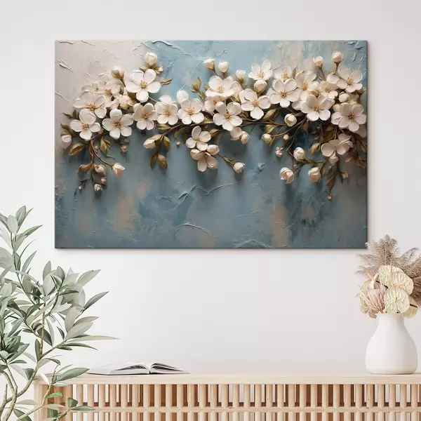 Paveikslas Šaka su gėlėmis akrilo stiliaus fone Nr s43111