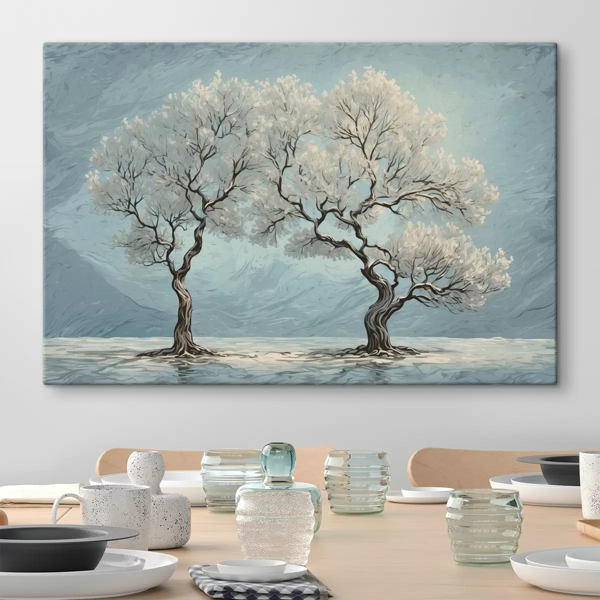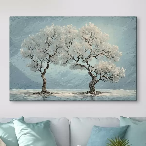 Paveikslas Balti medžiai akrilo tapybos stiliumi Nr s43112