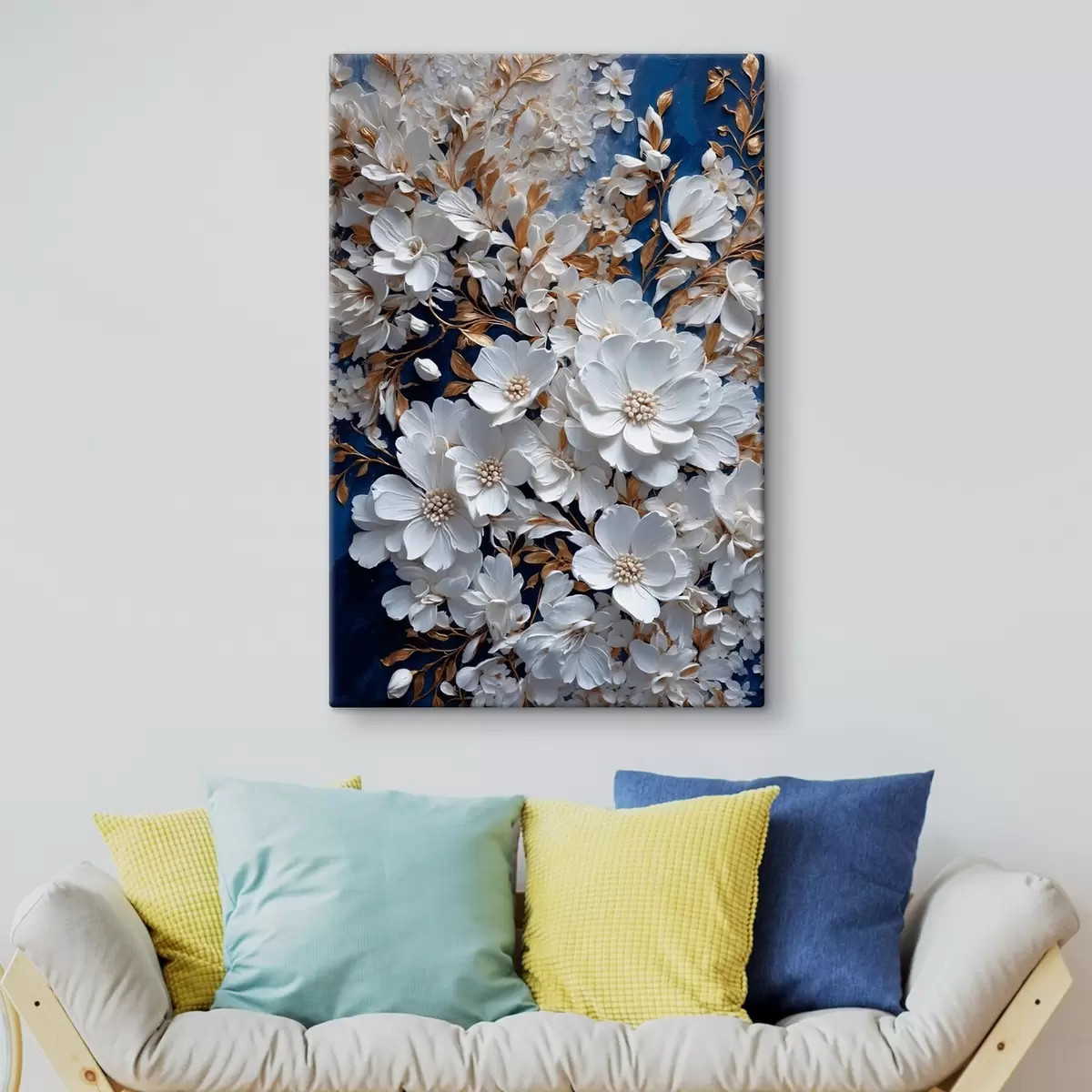 Paveikslas Baltos gėlės mėlyname fone Nr s43116