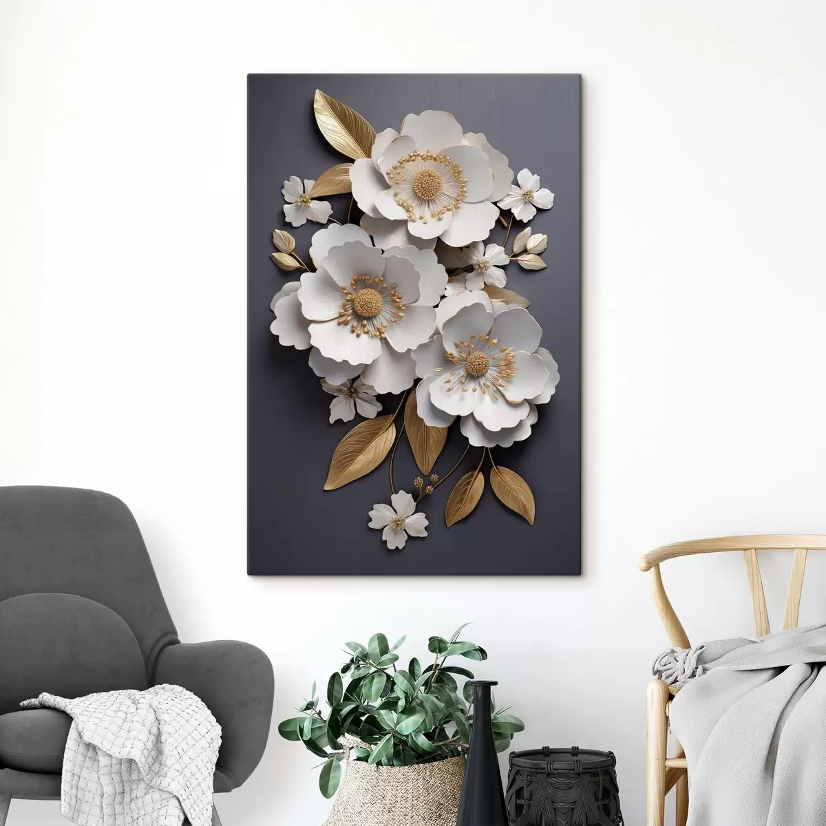 Paveikslas Trys baltos gėlės tamsiame fone Nr s43129
