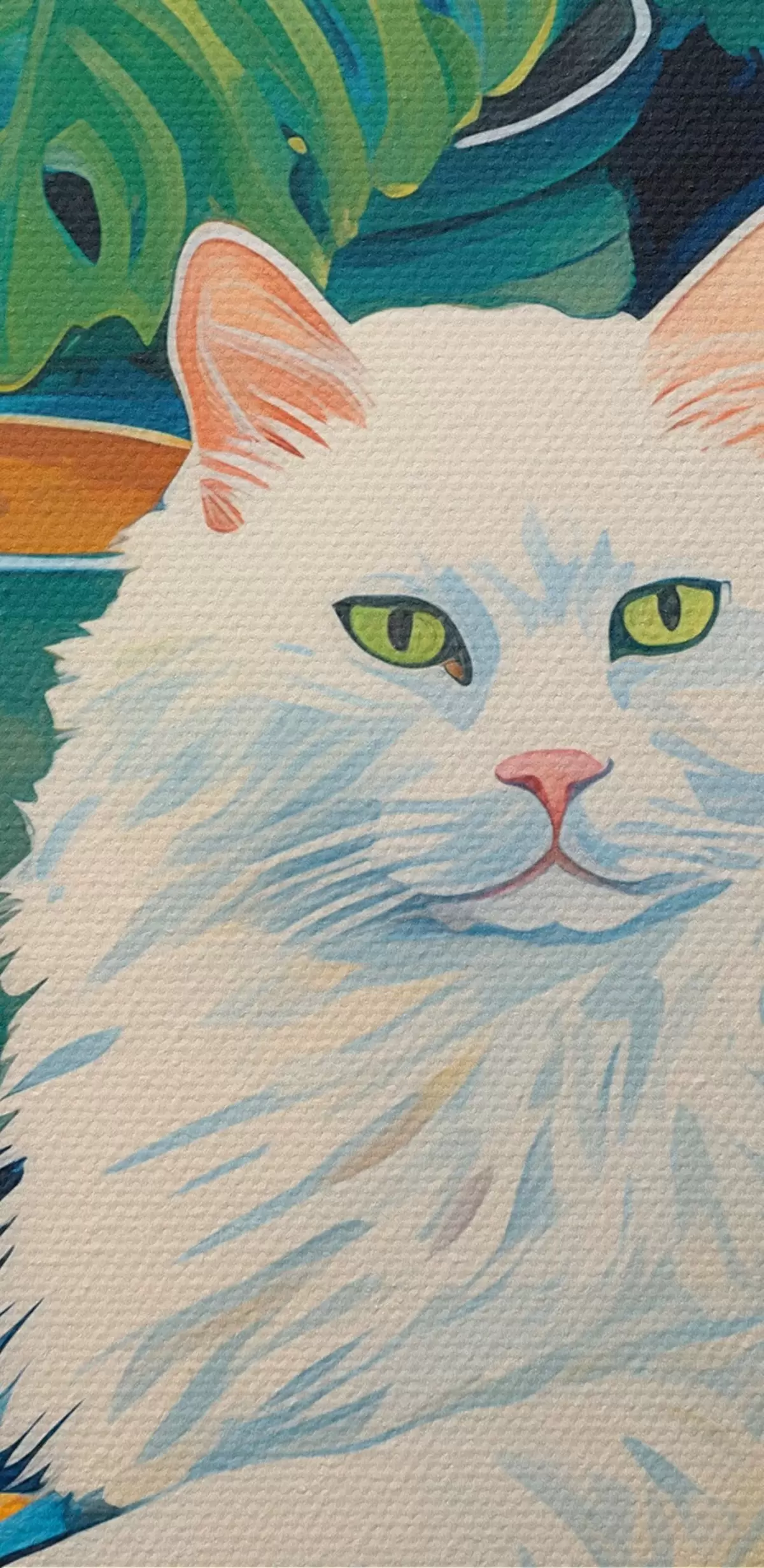 Paveikslas Balta katė tarp vešlios žalumos ir keraminių vazonų Nr s43131