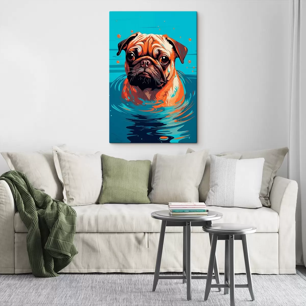 Paveikslas Stilizuotas mopsiuko vandenyje portretas su išraiškingu žvilgsniu Nr s43136