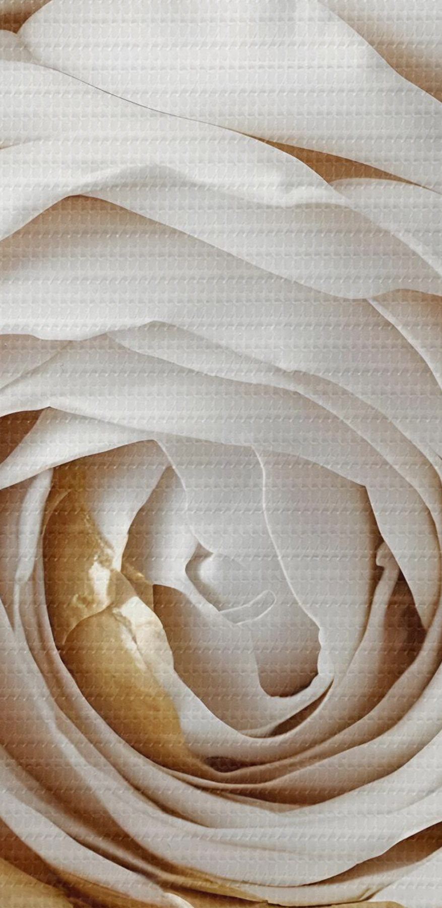 Paveikslas Balta minimalistinė dekoratyvinė rožė su geltonais akcentais, žiedlapiai sluoksniuoti ir susukti Nr s43160