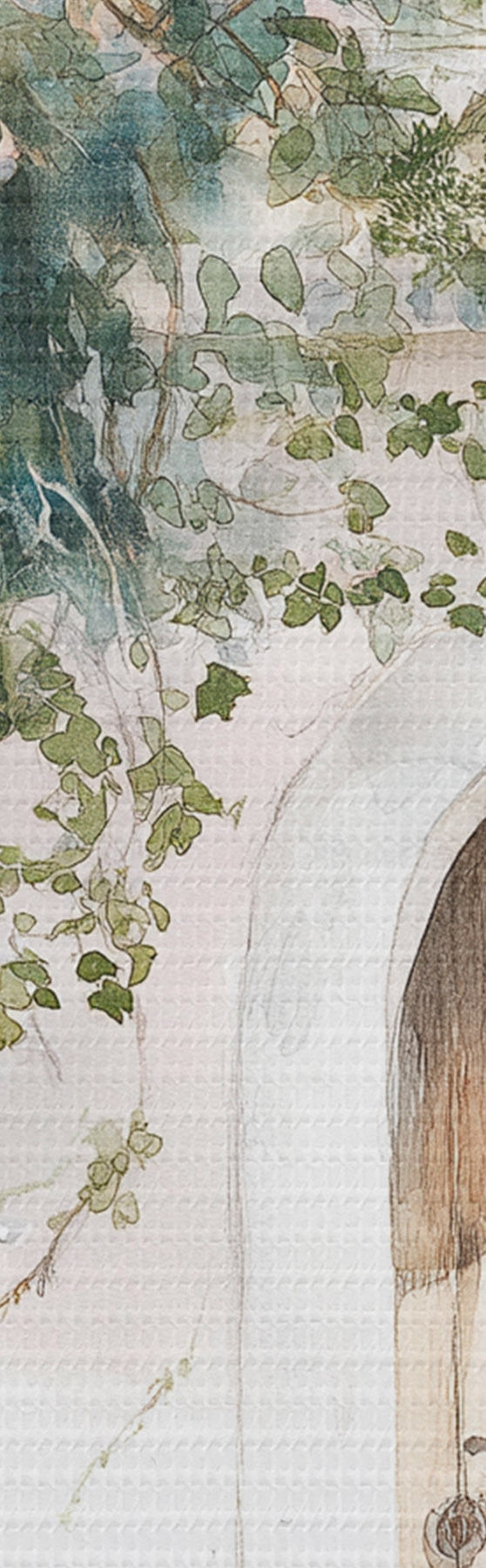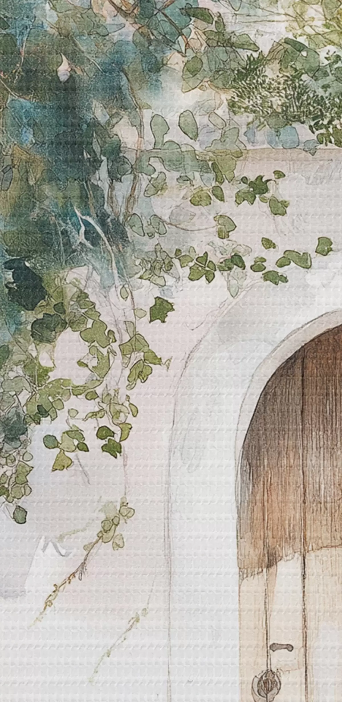Paveikslas Gražus baltas namas su žydinčiu medžiu, Viduržemio jūros regionas, akvarelės stilius Nr s43179