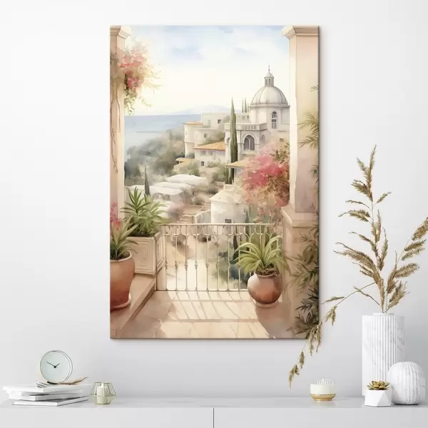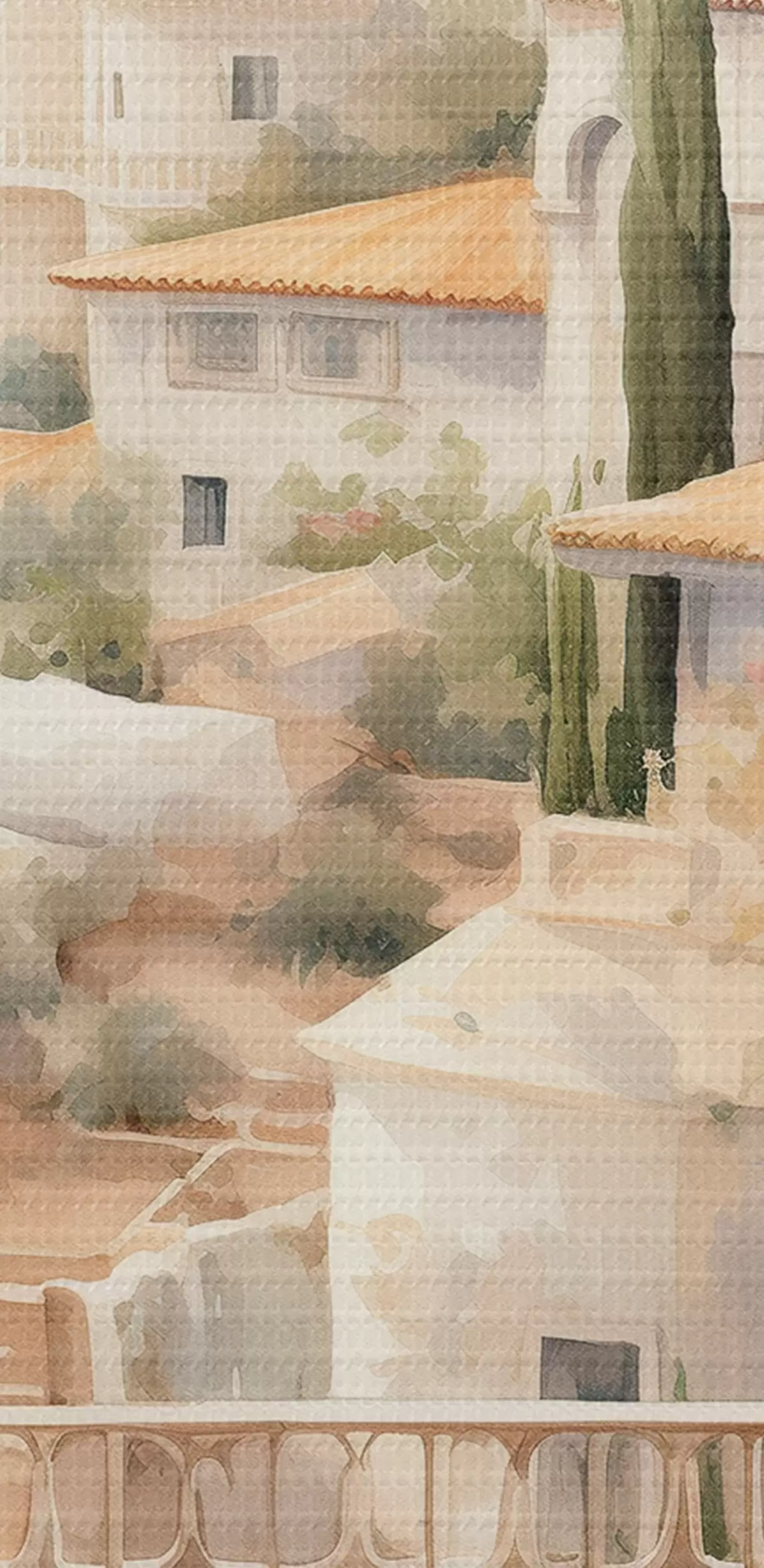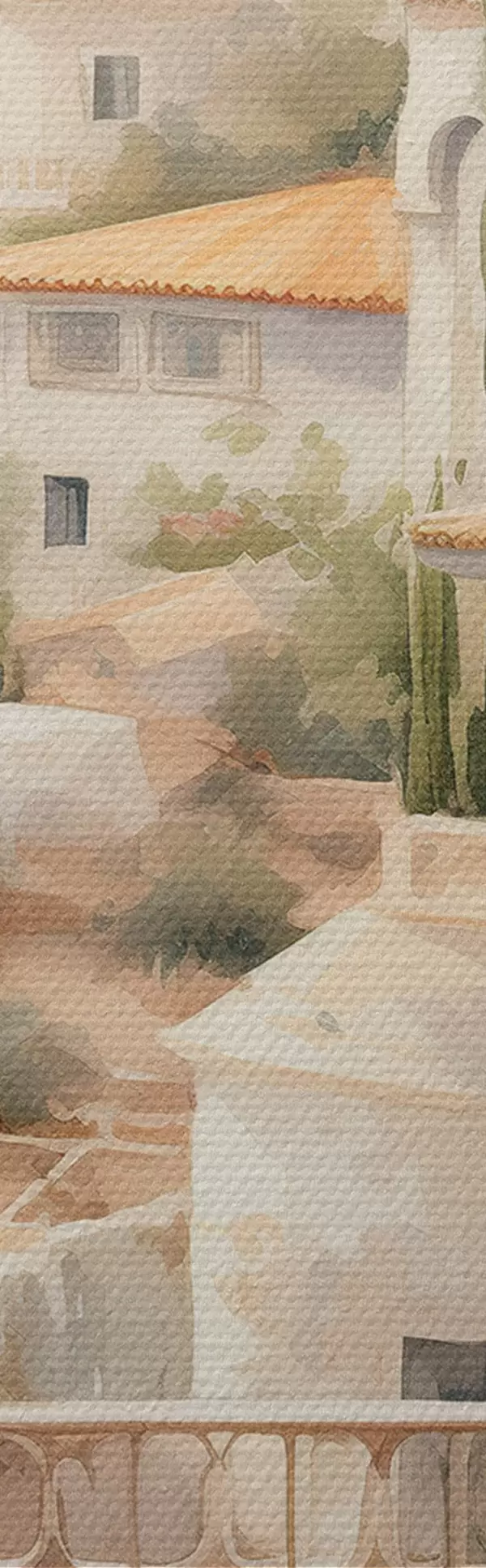 Paveikslas Ispanijos vasaros kraštovaizdis, Viduržemio jūros regiono architektūra, akvarelės stilius Nr s43181