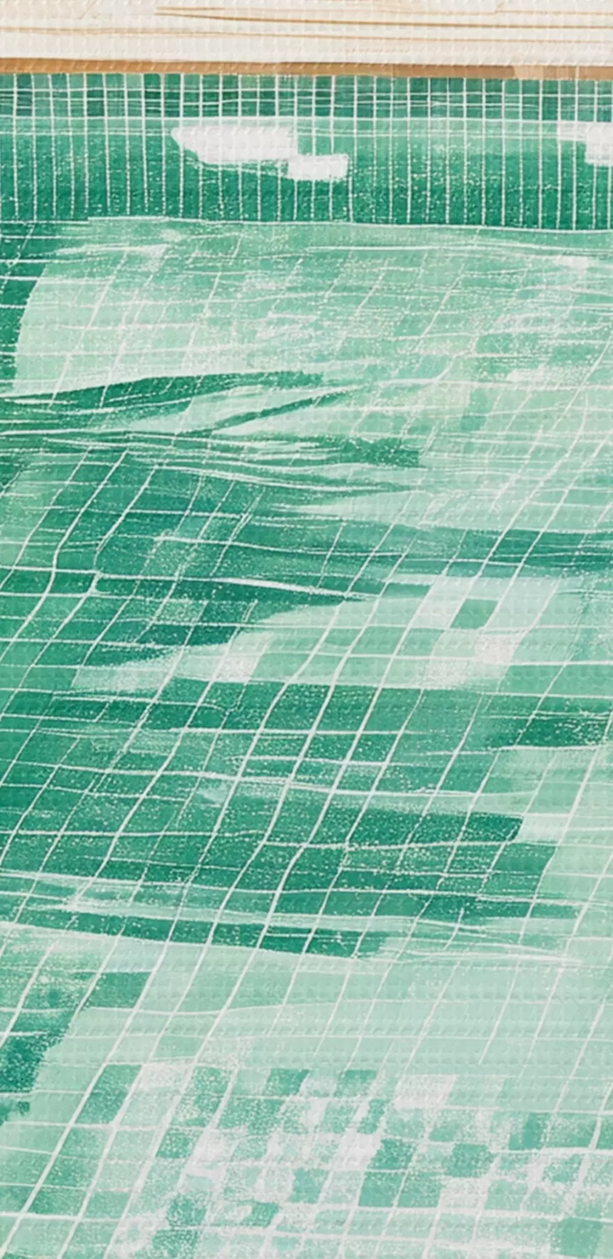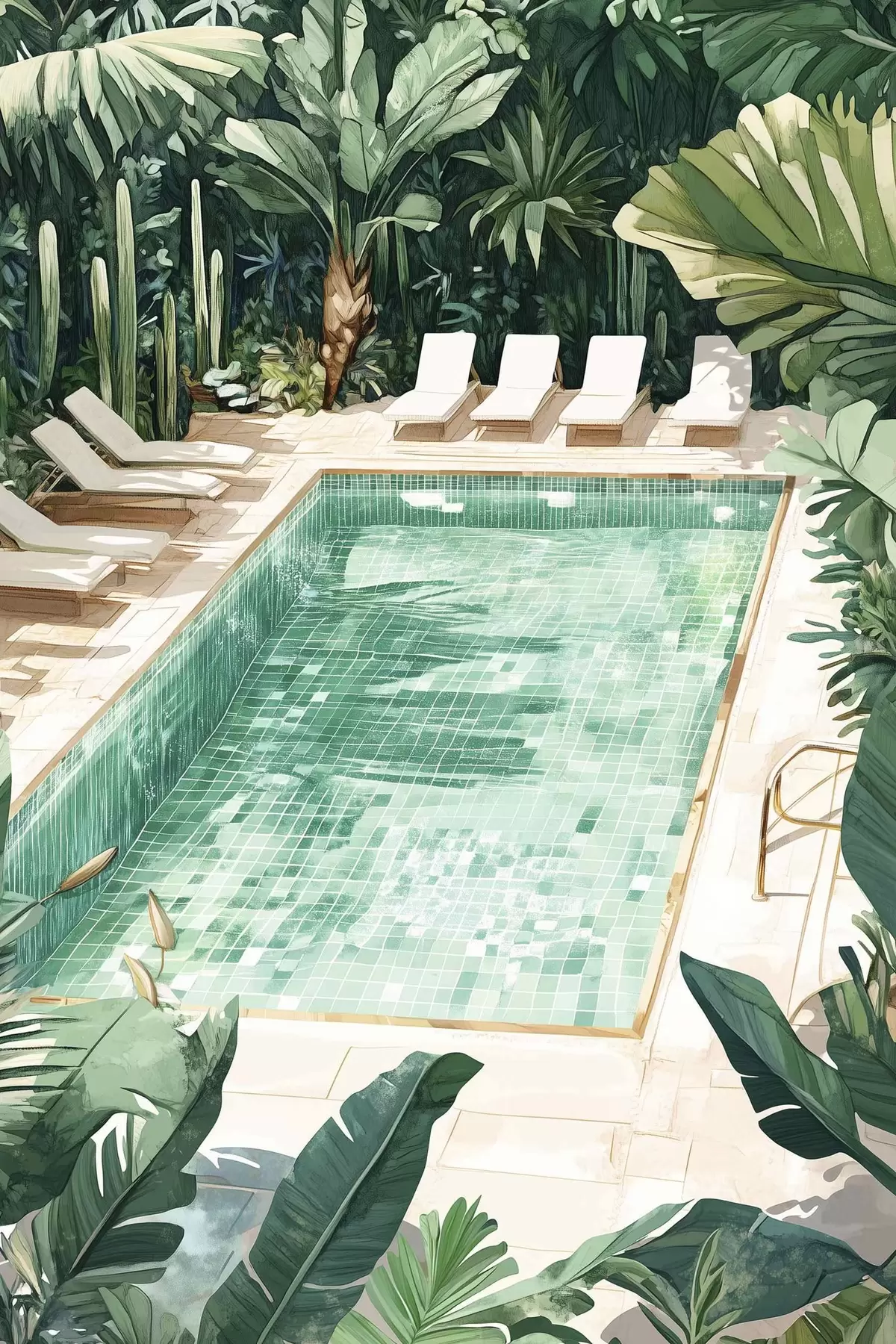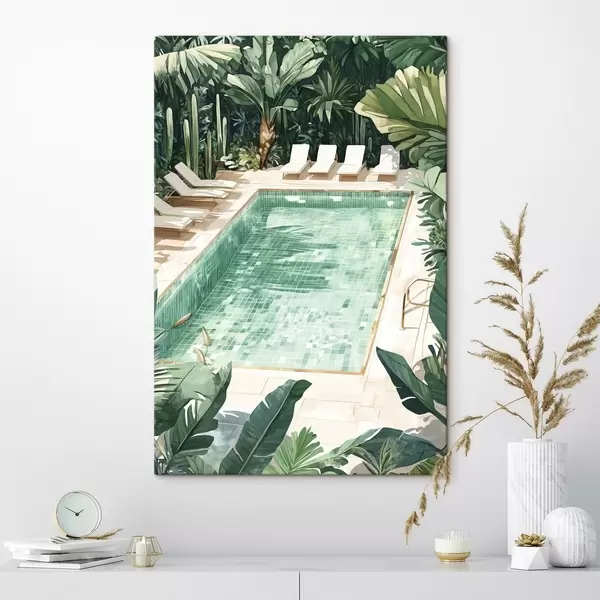 Paveikslas Vasaros baseinas žaliame sode, vintažinis stilius, akvarelė Nr s43189