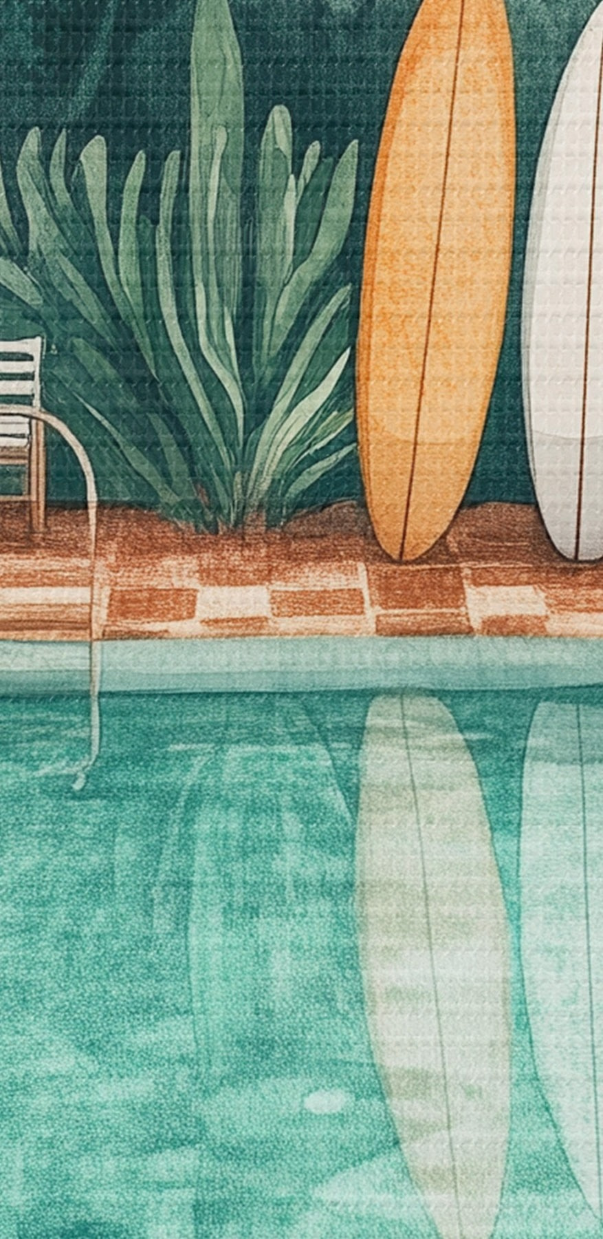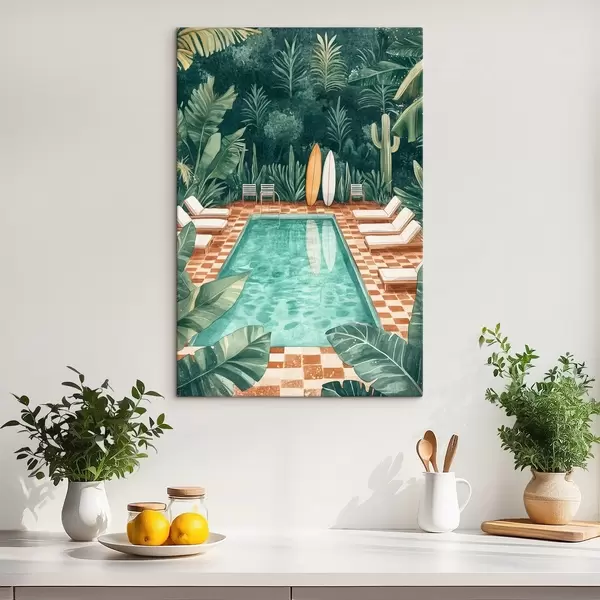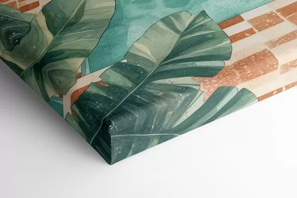 Paveikslas Senovinis vasaros baseinas, atogrąžų miškas, žaluma, palmės, akvarelės stilius Nr s43191