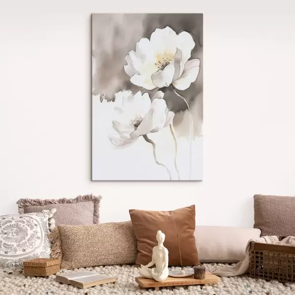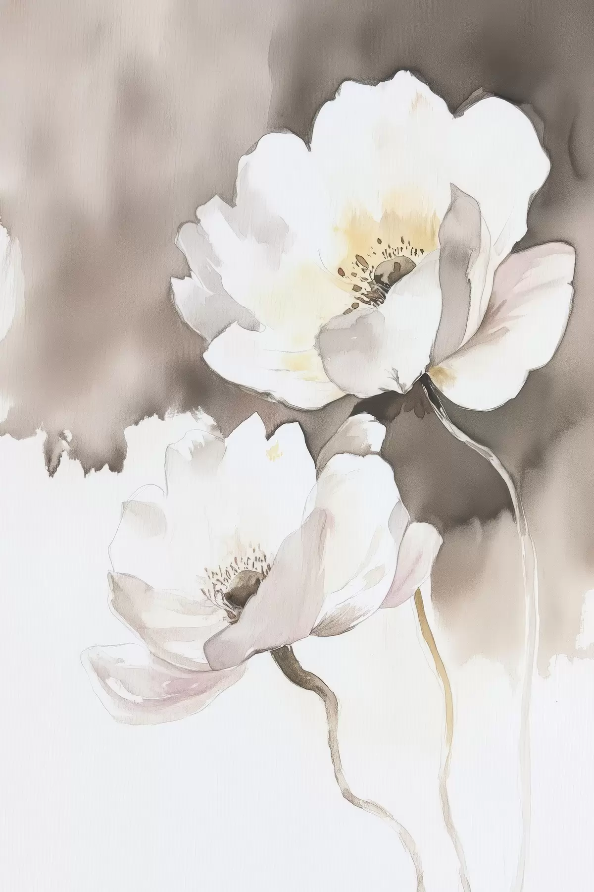 Paveikslas Baltos gėlės rudame fone akvarelės dažų stiliumi Nr s43297
