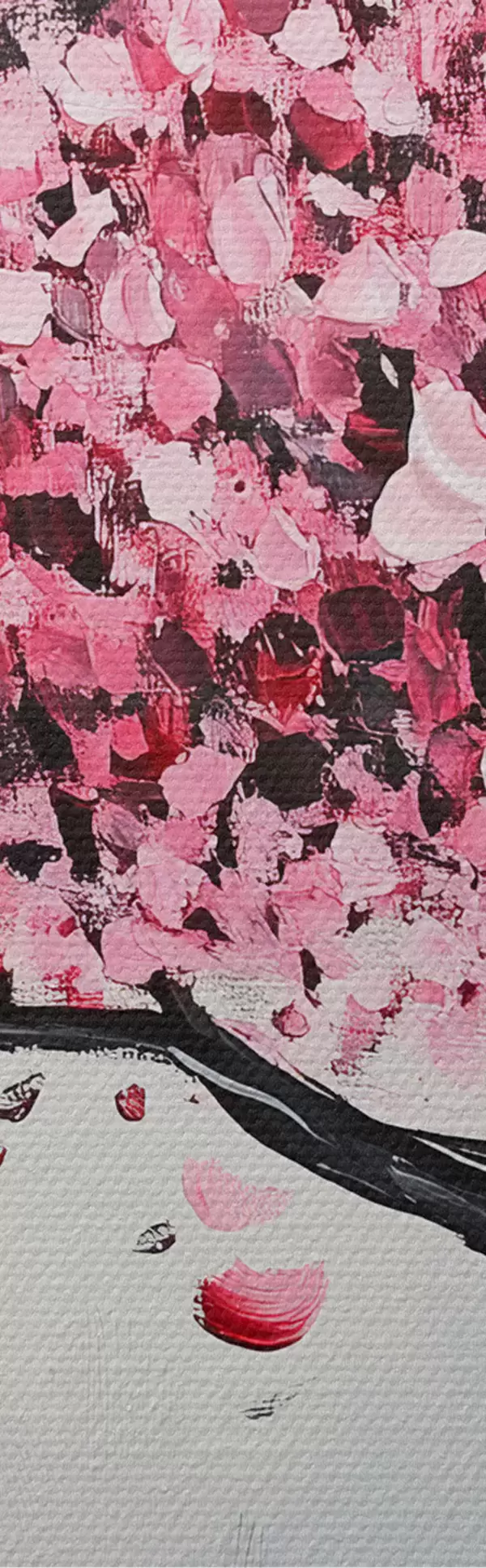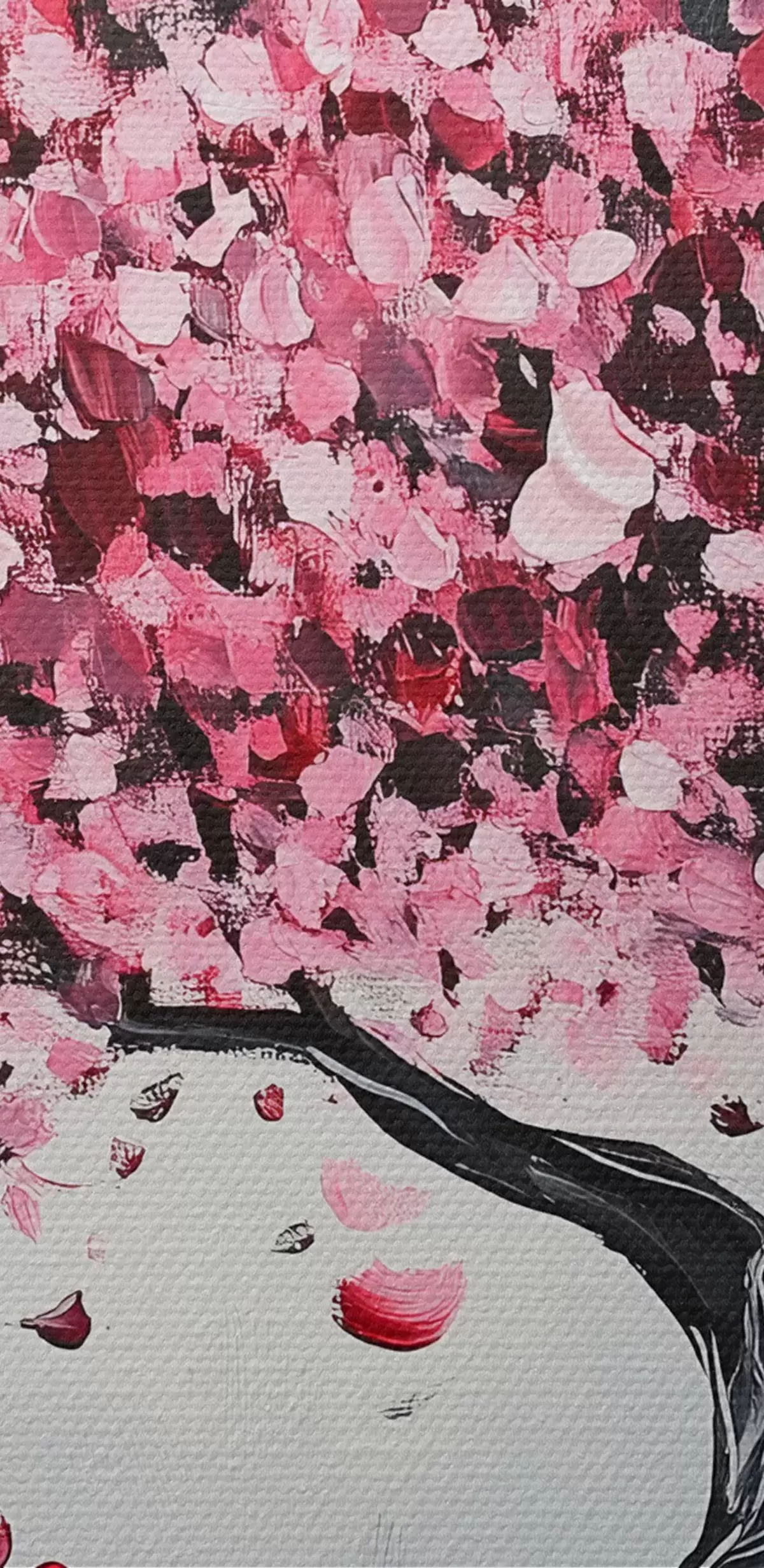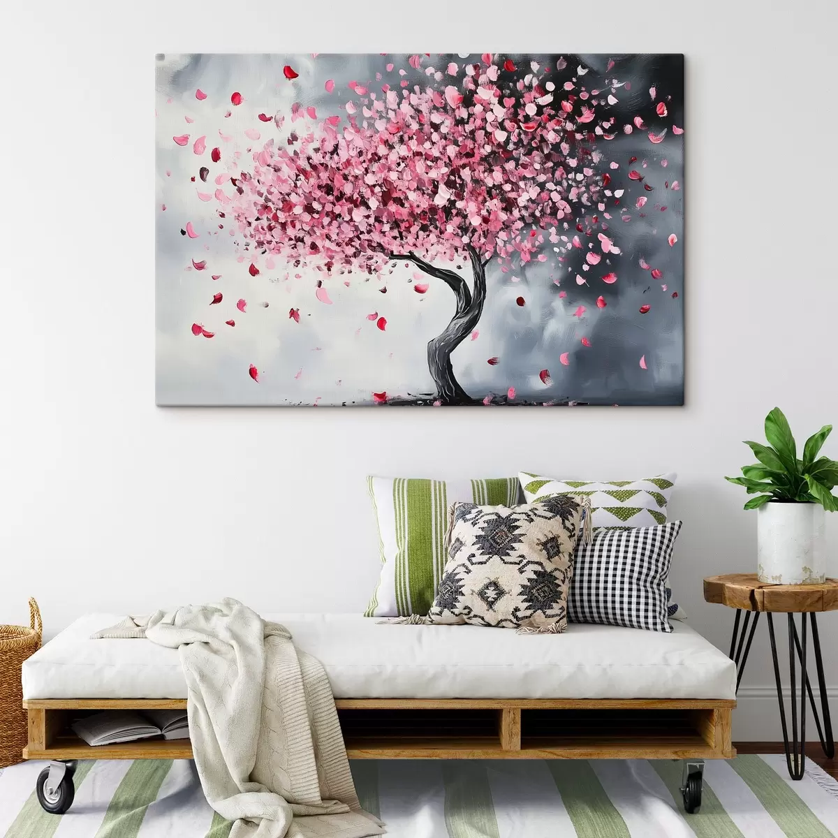 Paveikslas Rožinis žydintis medis pilkame fone Nr s43299