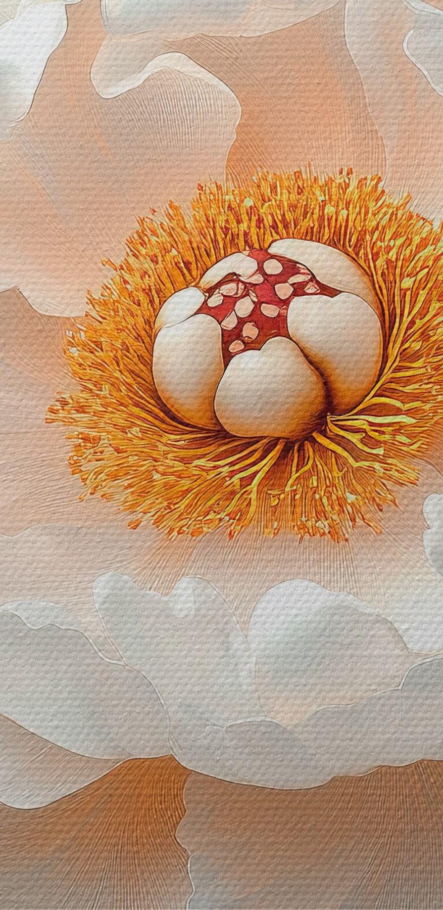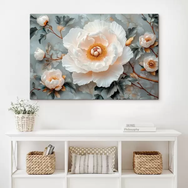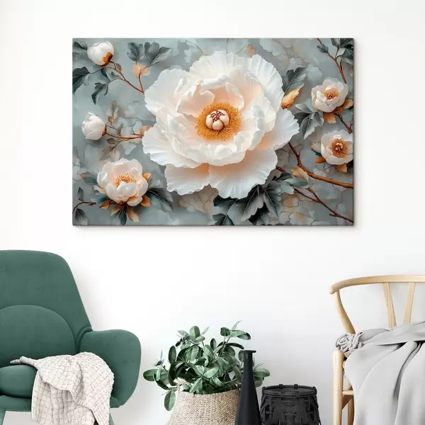 Paveikslas Puošnus bijūnas lapų ir mažų bijūnų fone Nr s43315