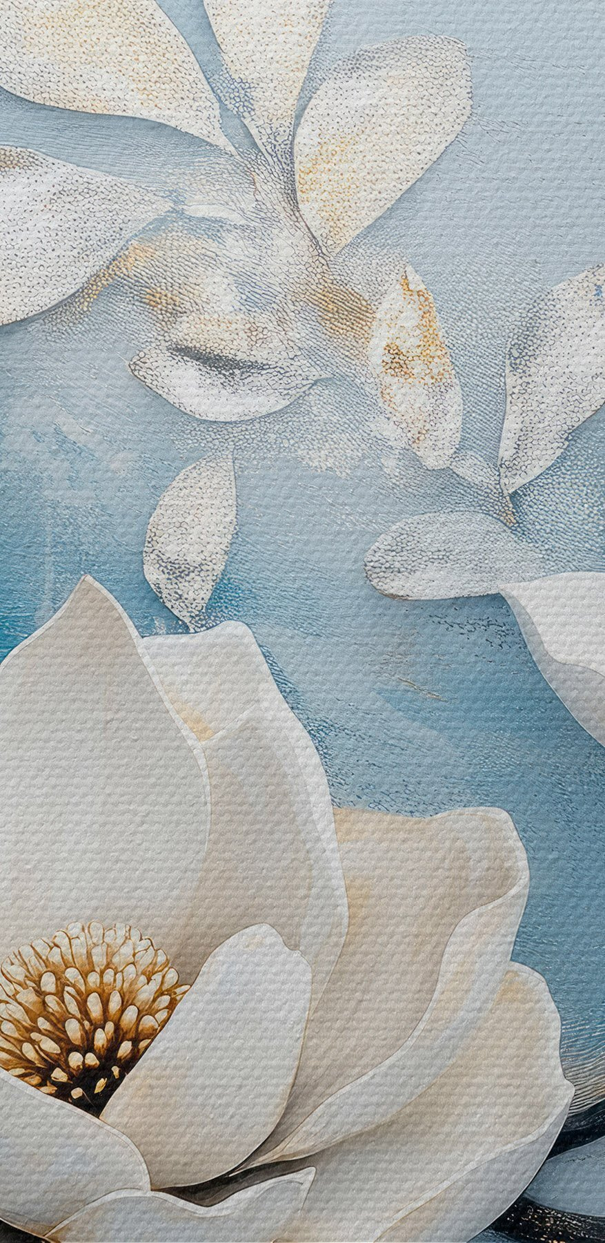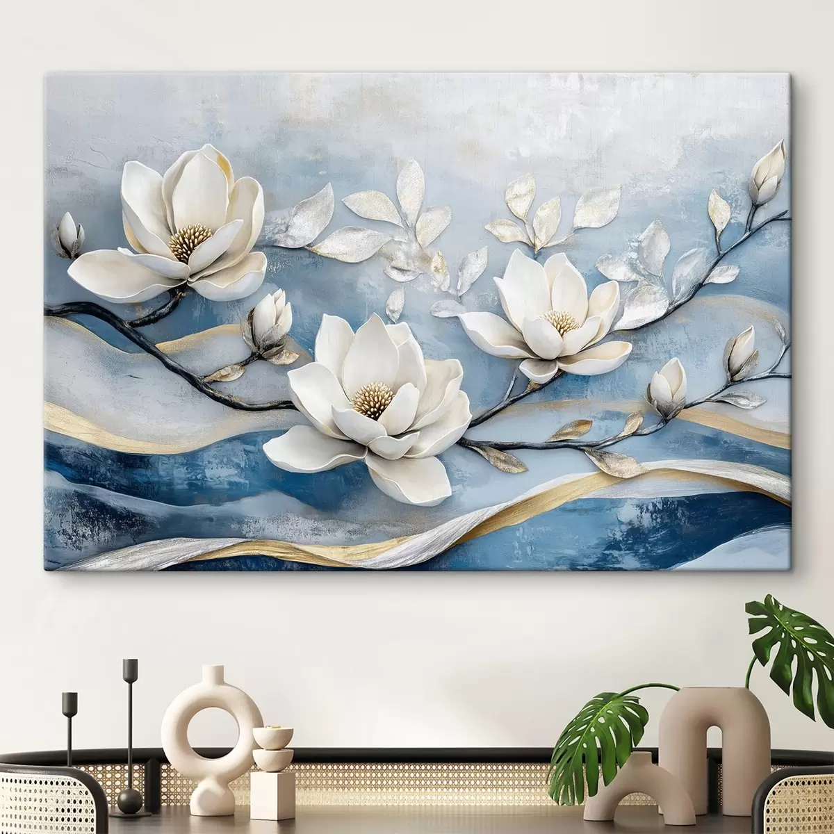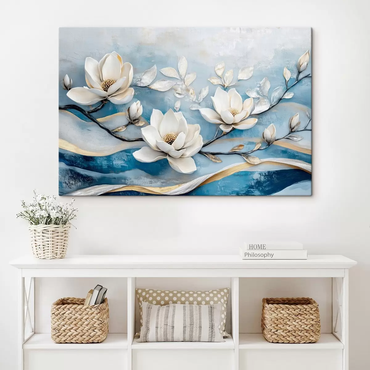Paveikslas Magnolijos šaka abstrakčiame mėlynai geltoname fone Nr s43323
