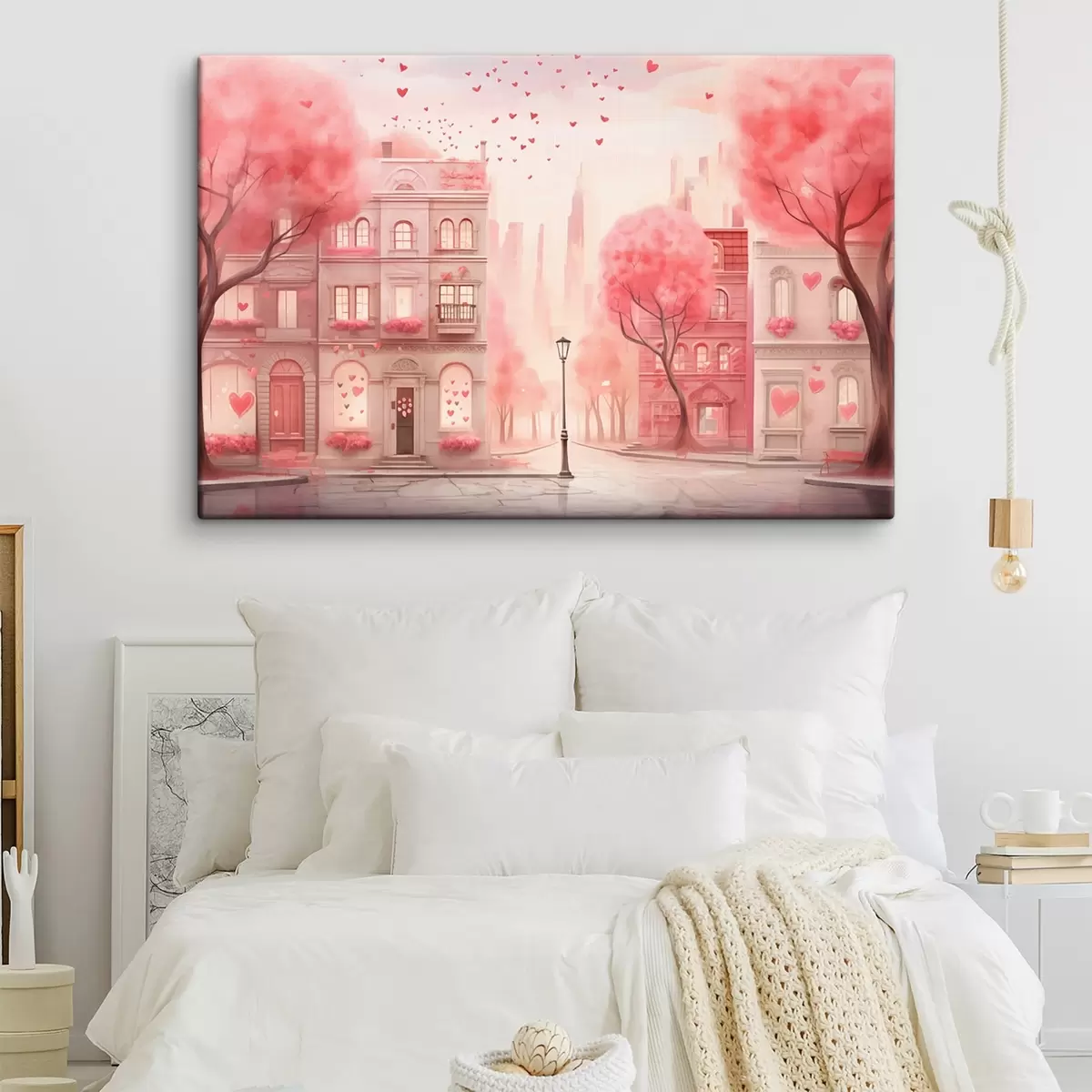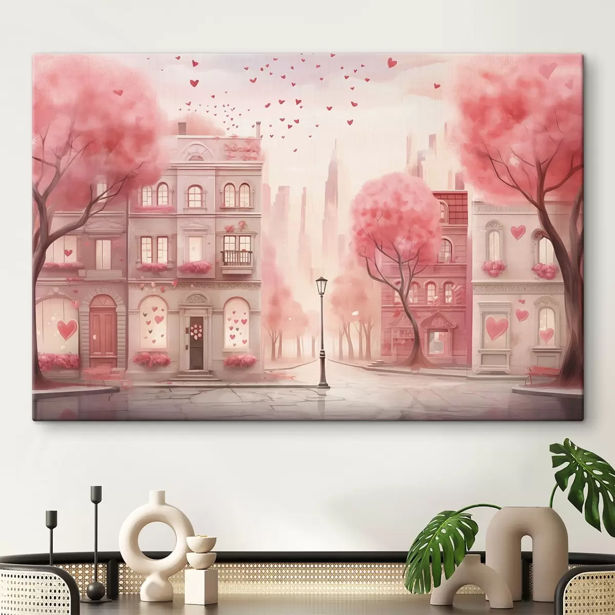 Paveikslas Romantiška rožinė gatvė su širdelėmis Nr s43324