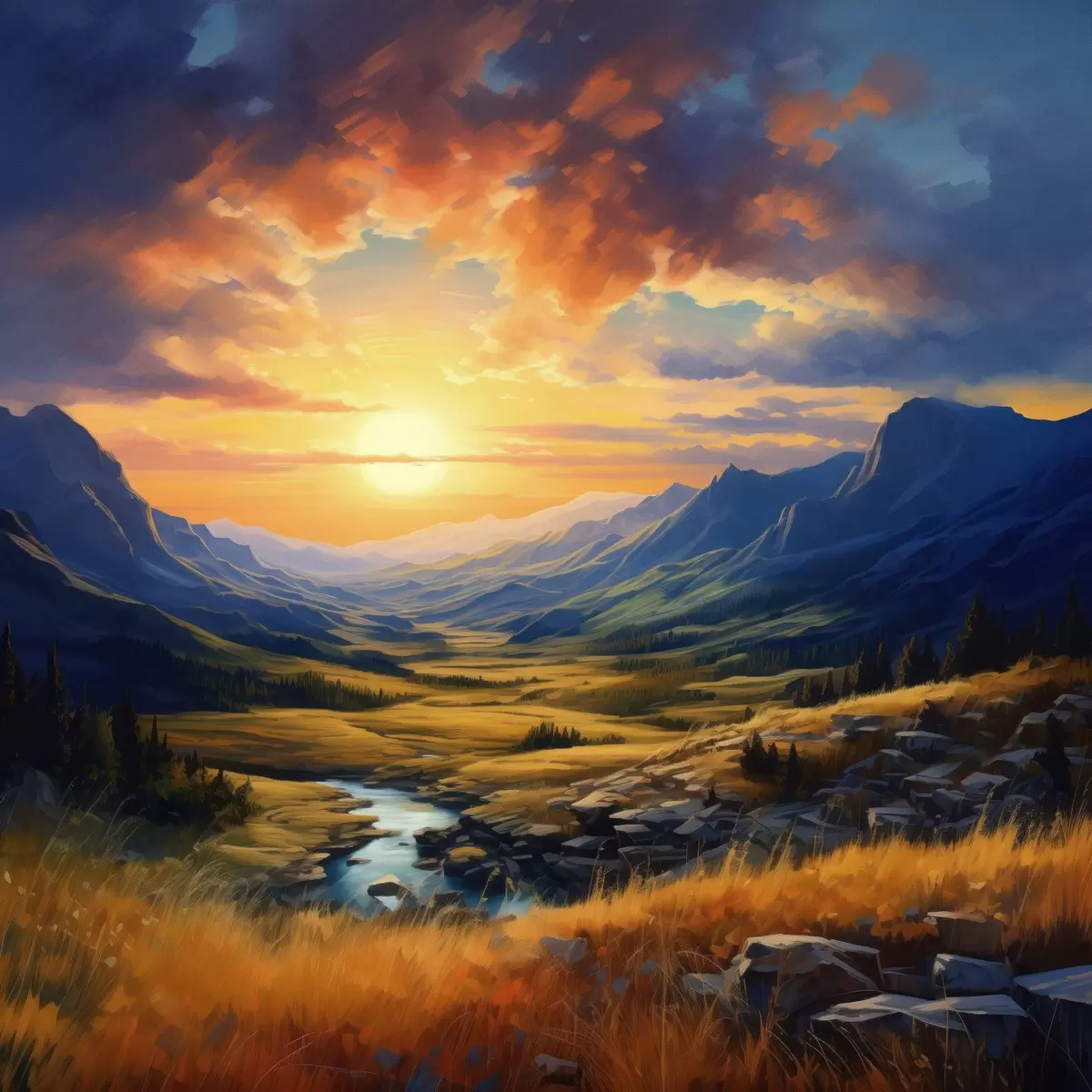 Paveikslas Kalnų kraštovaizdis saulėlydžio metu Nr s43378