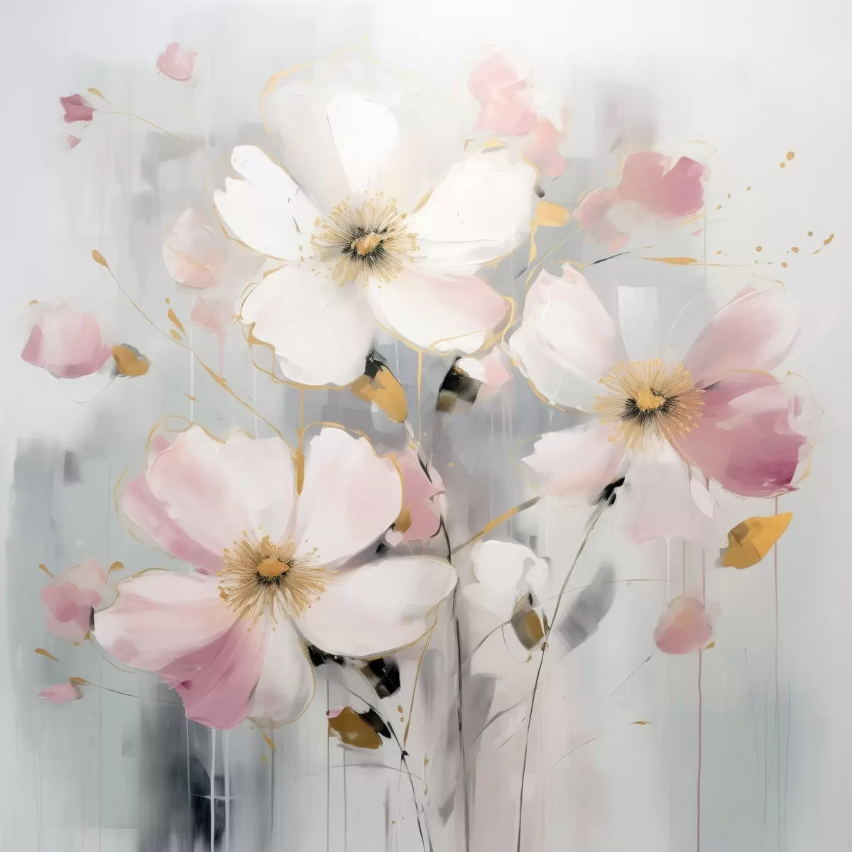 Paveikslas Minkštų tonų gėlės su dideliais teptuko potėpiais tapybos stiliumi Nr s43380