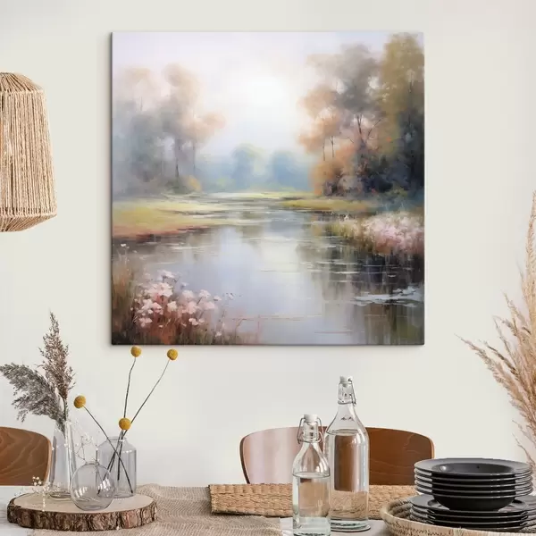 Paveikslas Miško gamta su upe, gėlėmis ir medžiais Nr s43386