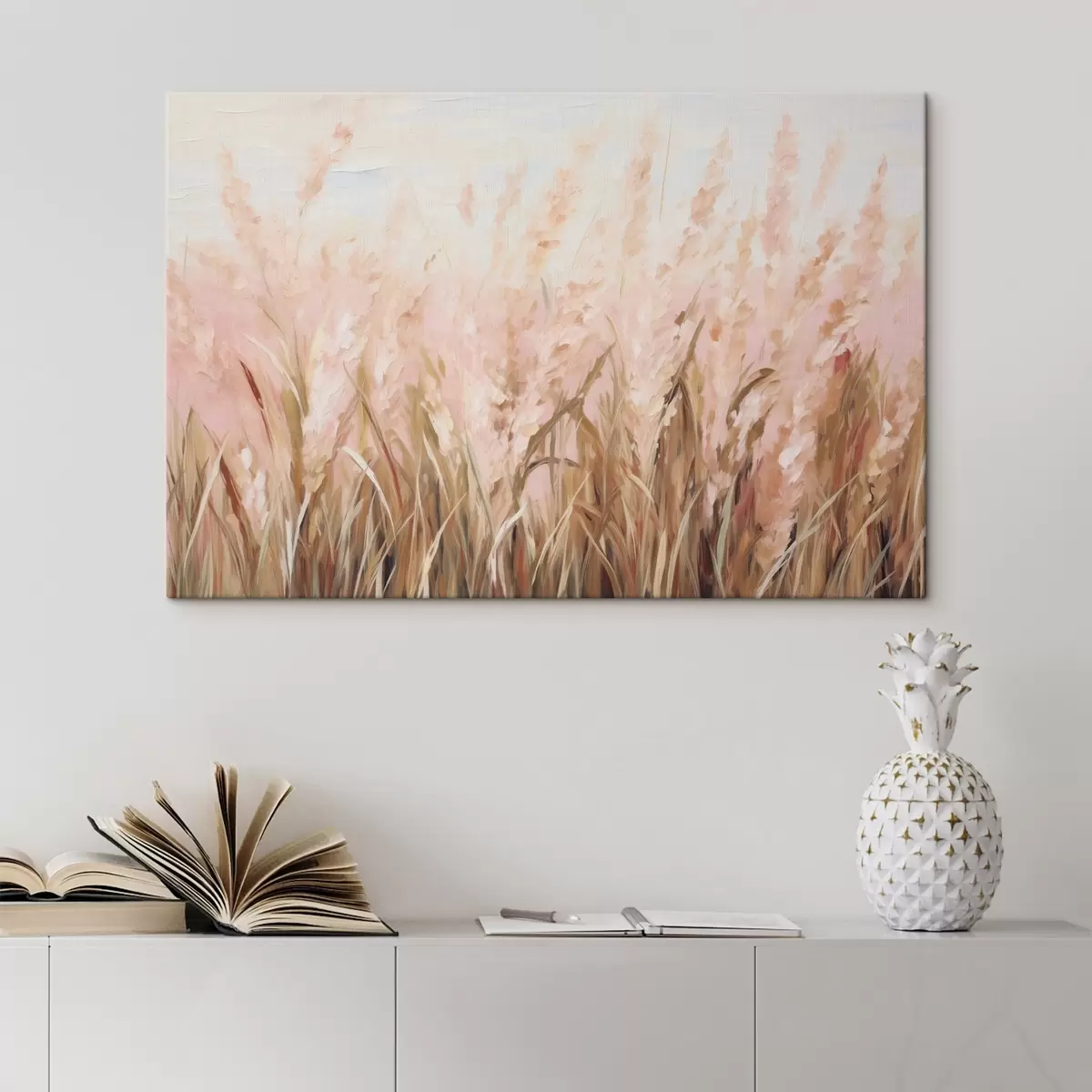 Paveikslas Pampų žolės laukas su rausvais ir rudais tonais, minkšti potėpiai, abstrakti aliejinės tapybos meno imitacija Nr s43403
