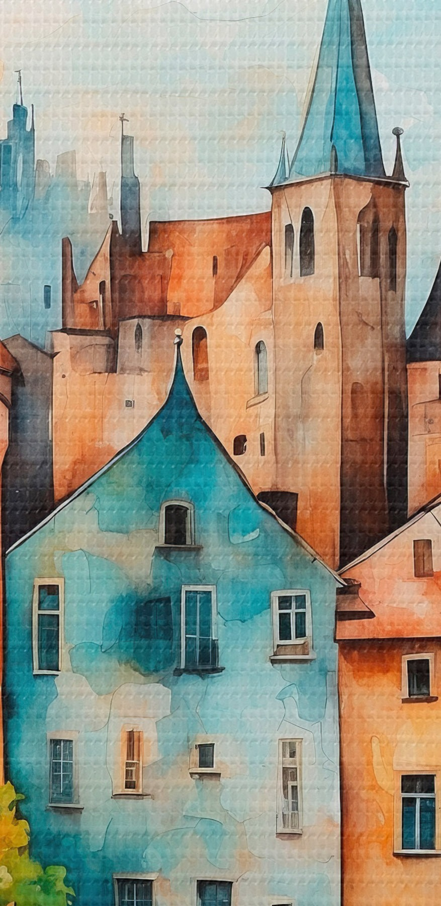 Paveikslas Europos miestas stiliaus akvarele tapyba Nr s43441