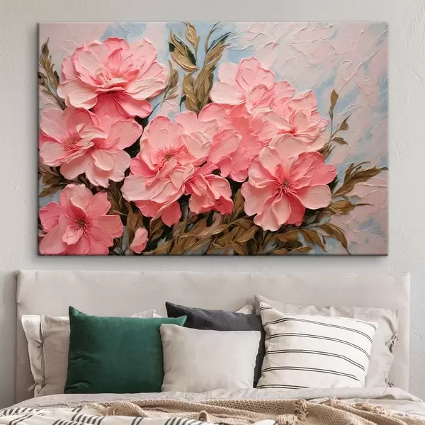 Paveikslas Rožinės gėlės ir lapai aliejinės tapybos stiliumi Nr s43453