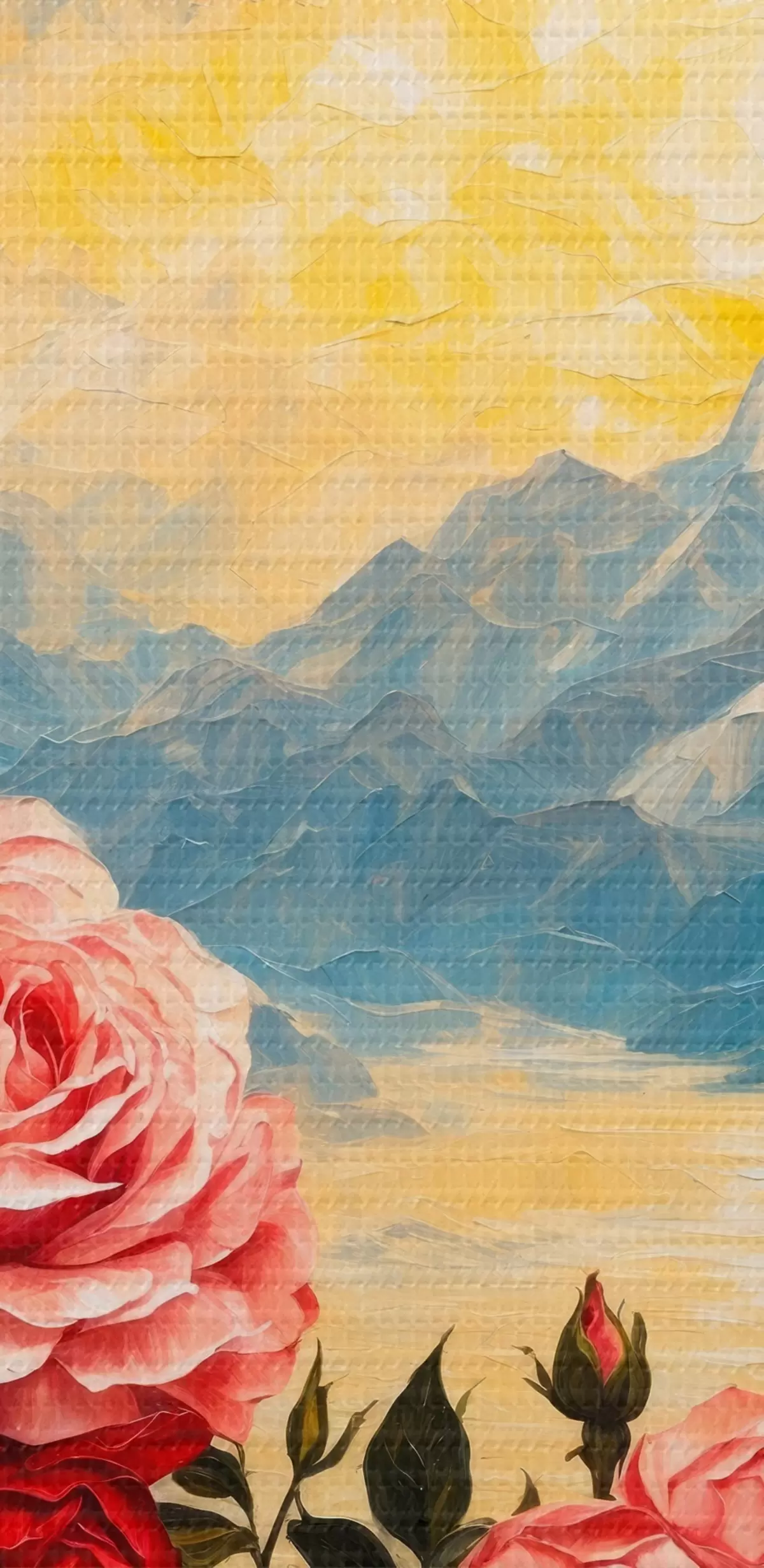 Paveikslas Rožės kalnų fone aliejinės tapybos stiliumi Nr s43457