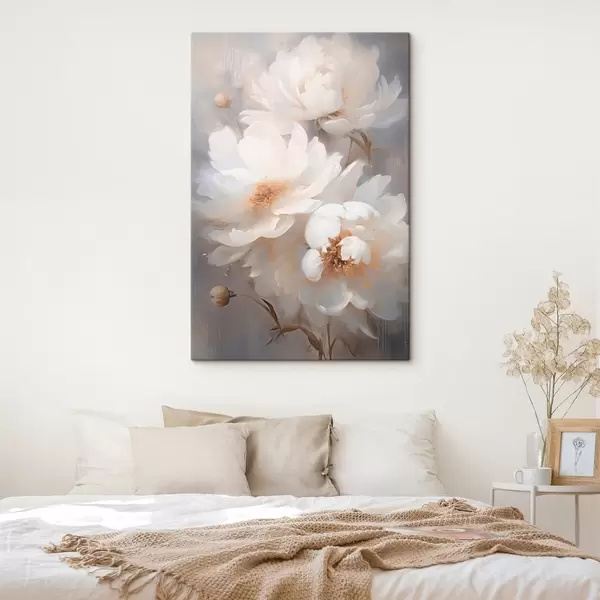 Paveikslas Baltos gėlės ir stiebai neryškiame fone Nr s43473