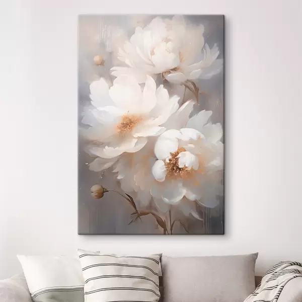 Paveikslas Baltos gėlės ir stiebai neryškiame fone Nr s43473