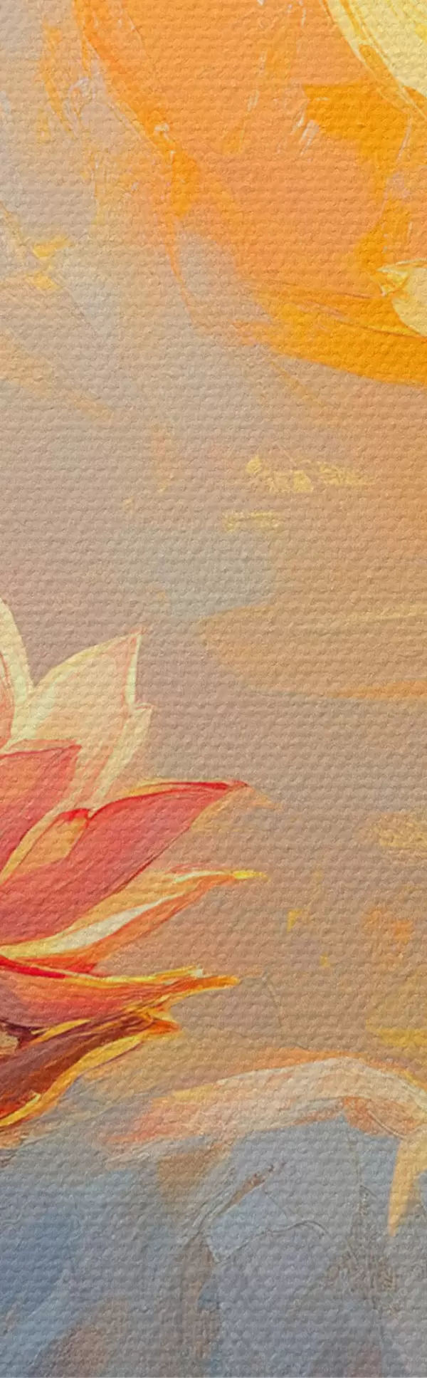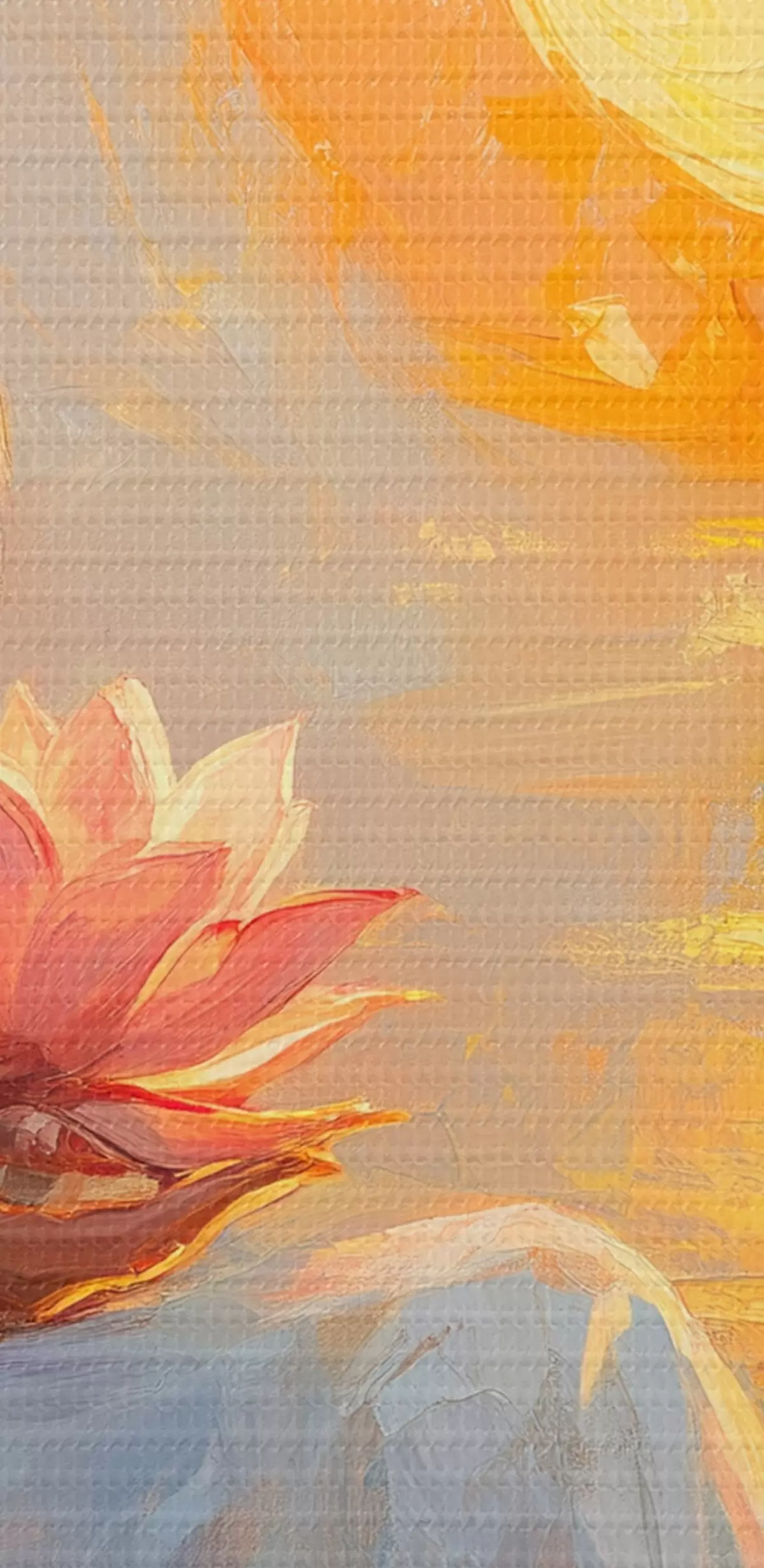 Paveikslas Moteris su lotoso žiedu saulėlydyje, baltas paukštis, piešinys aliejiniais dažais Nr s43501