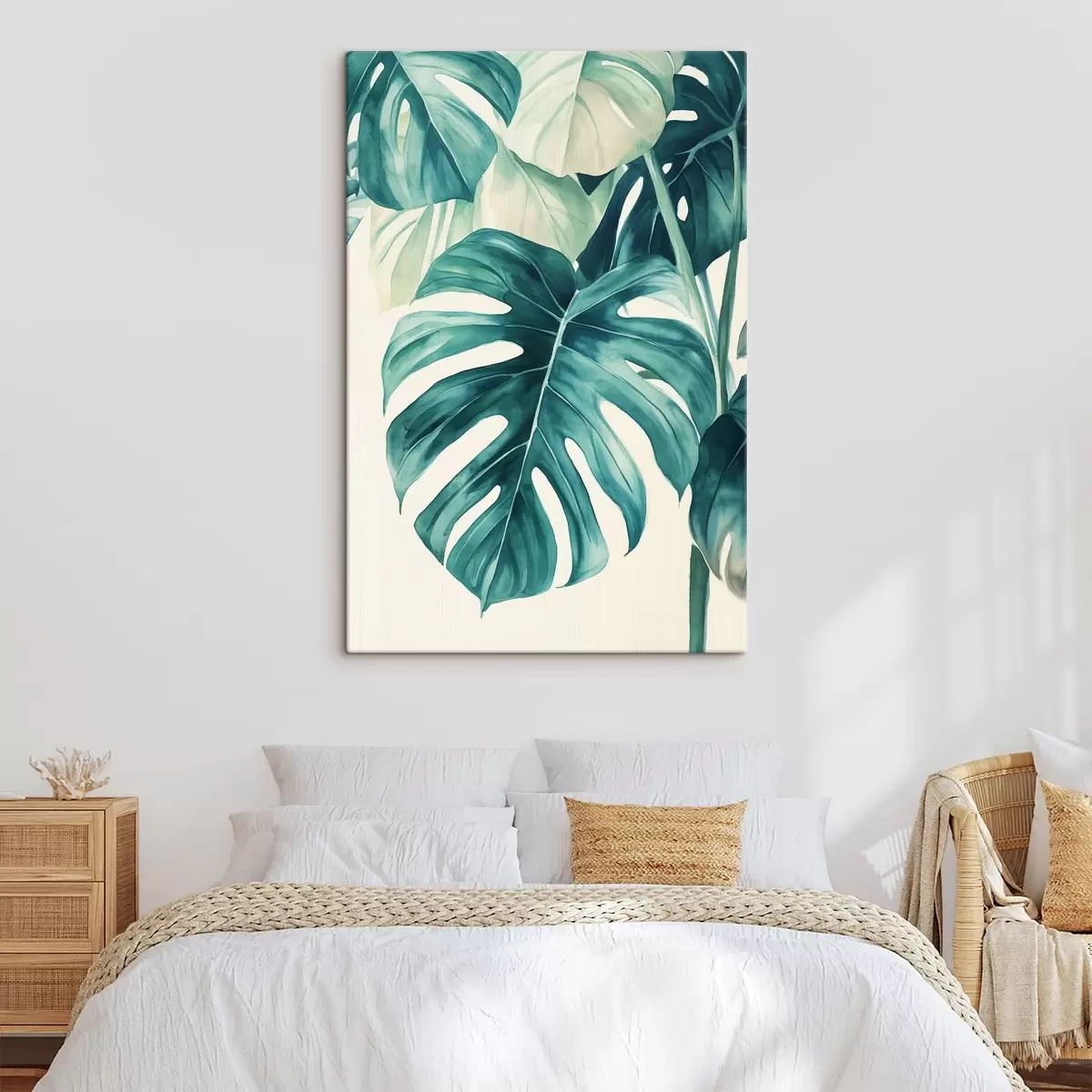 Paveikslas Monstera palmių lapai, akvarelės stilius, gėlių, atogrąžų Nr s43507