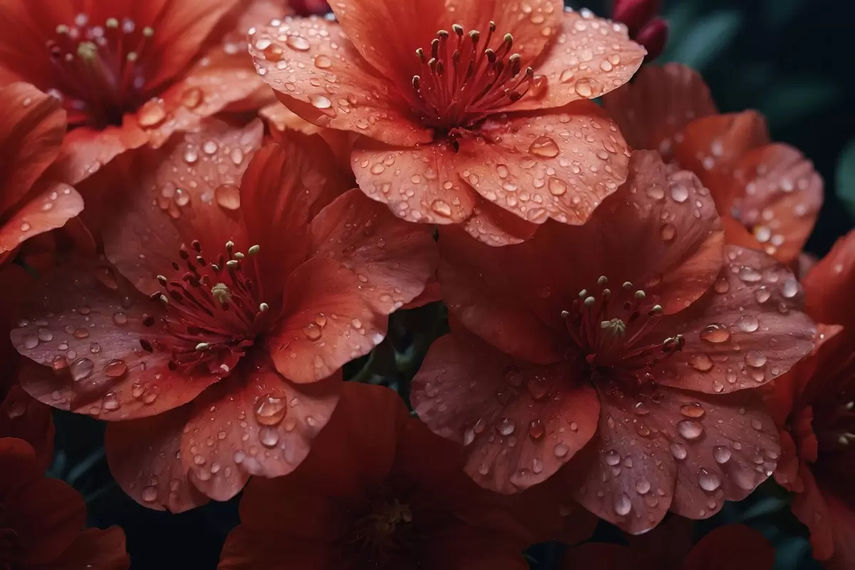Paveikslas Raudonos gėlės su rasos lašais Nr s43878