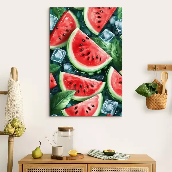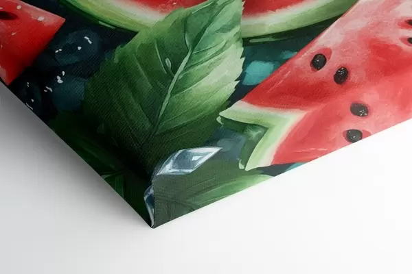Paveikslas Arbūzo griežinėliai su ledo kubeliais ir mėtomis, akvarelės stilius Nr s43880
