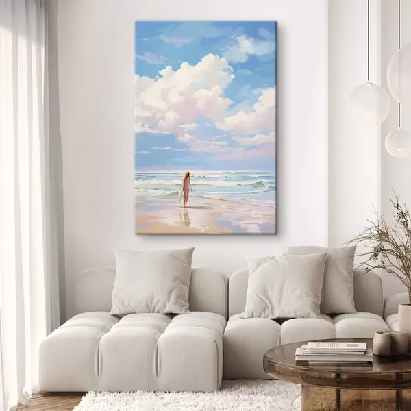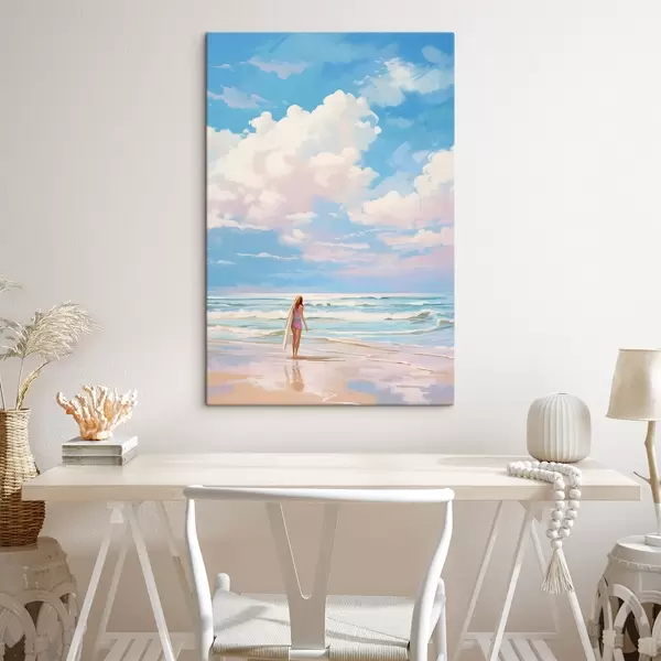 Paveikslas Mergina banglenčių sportas vandenyne, vasara, bangos, akrilo stilius Nr s43882